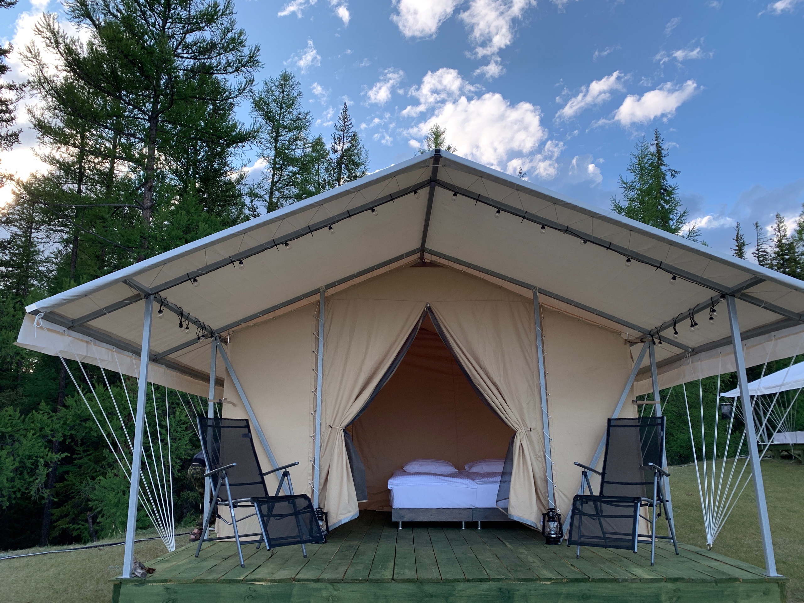 Глэмпинг Курай находится недалеко от одноименного села в Кош-Агачском районе. Из уютных шатров открывается заворачивающий виды. На территории есть походный ресторан. Отдых для тех, кто мечтает пожить в условиях дикой природы не отказываясь от комфорта.