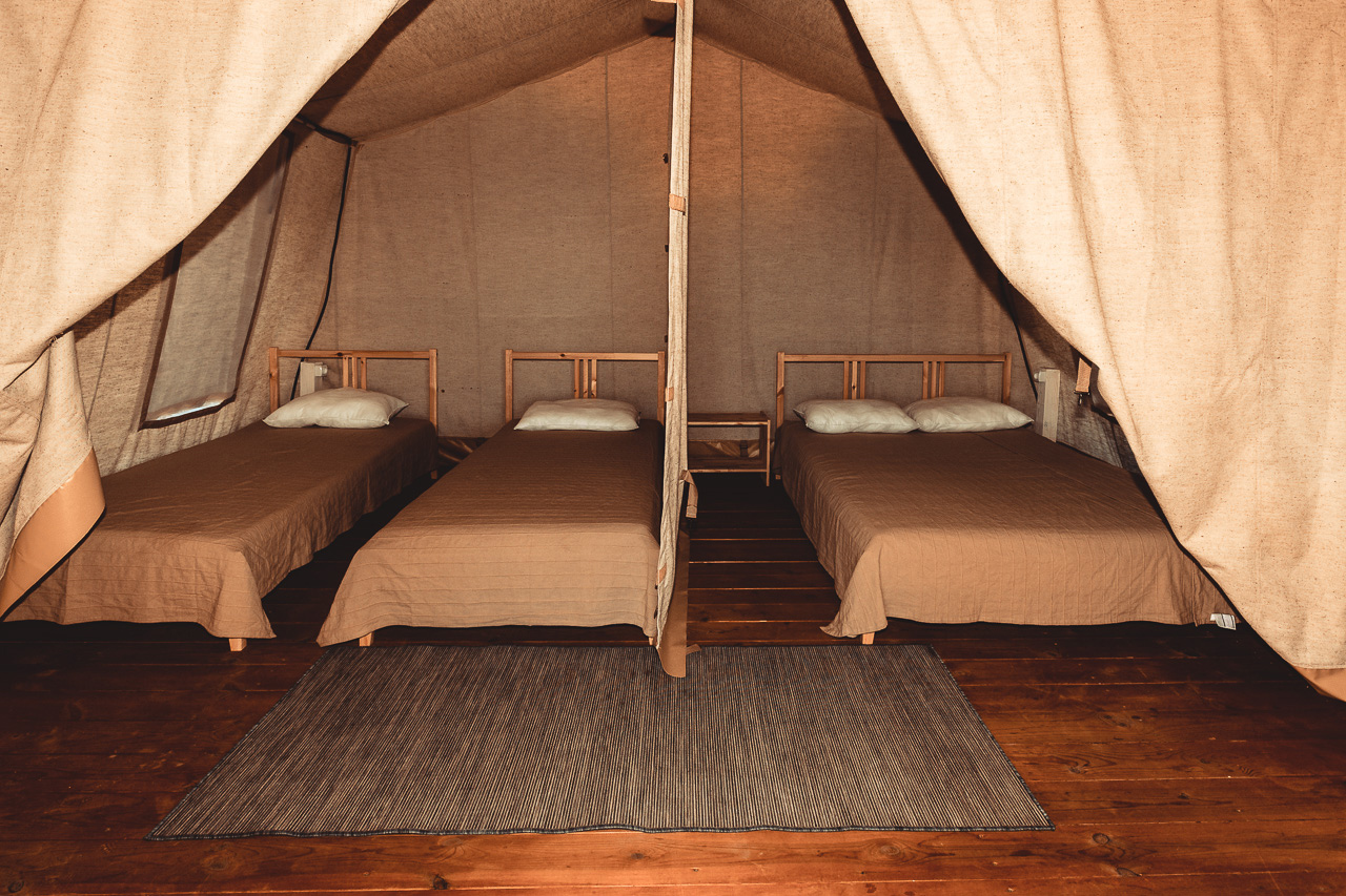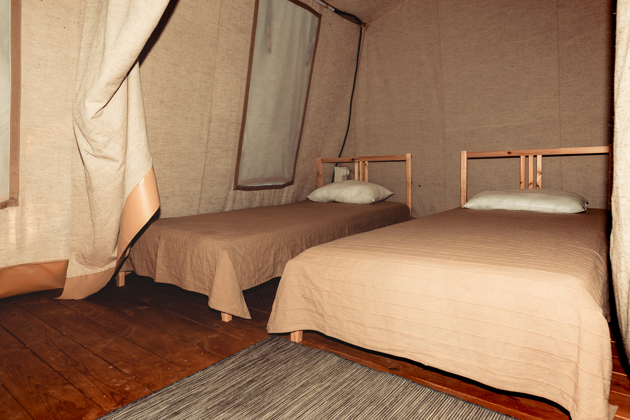 Территория глэмпинга огорожена и постоянно находится под охраной.