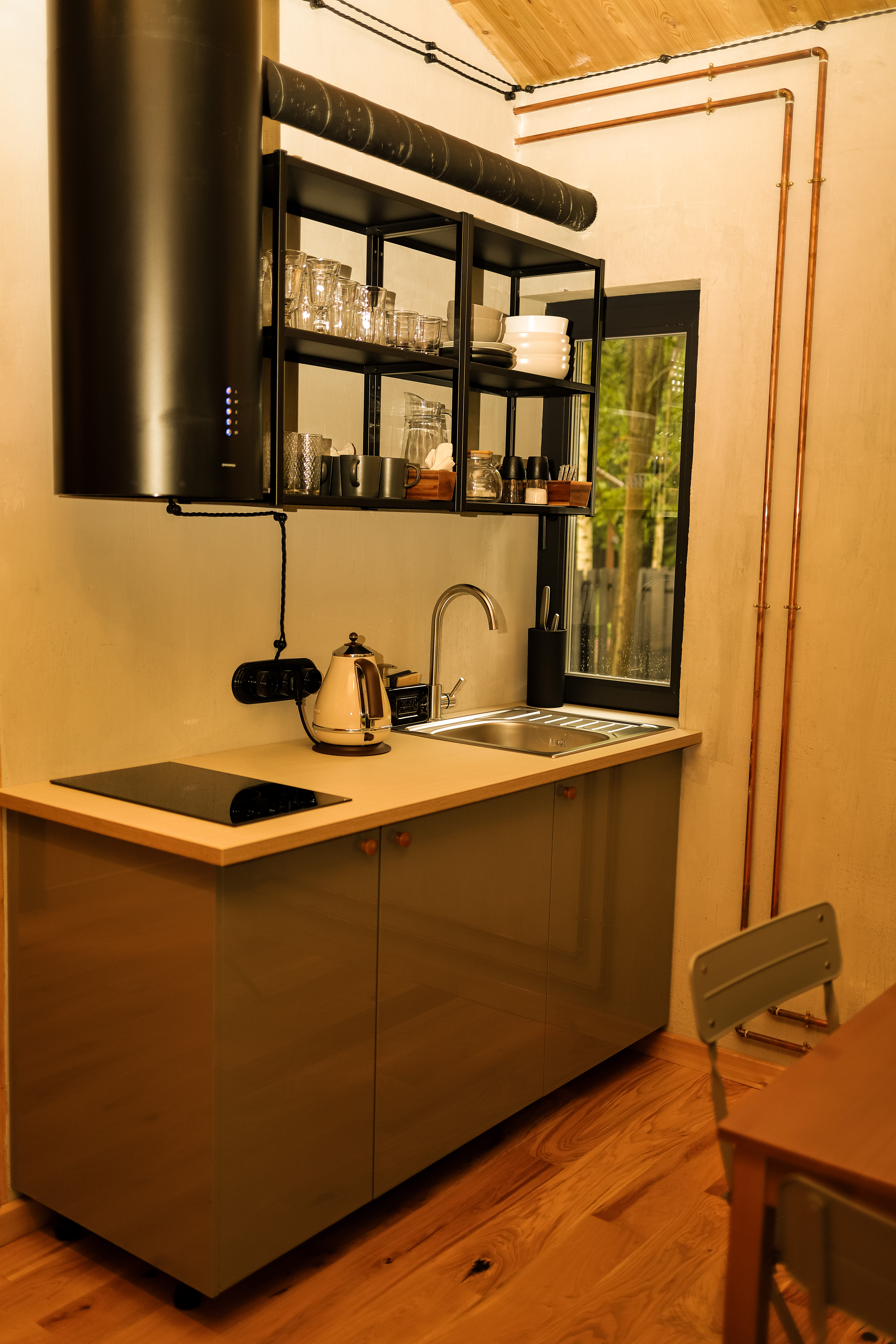 - Готовить можно самим, для этого в доме есть мини-кухня и необходимая посуда, оборудована зона барбекю или вы можете заказать доставку.
