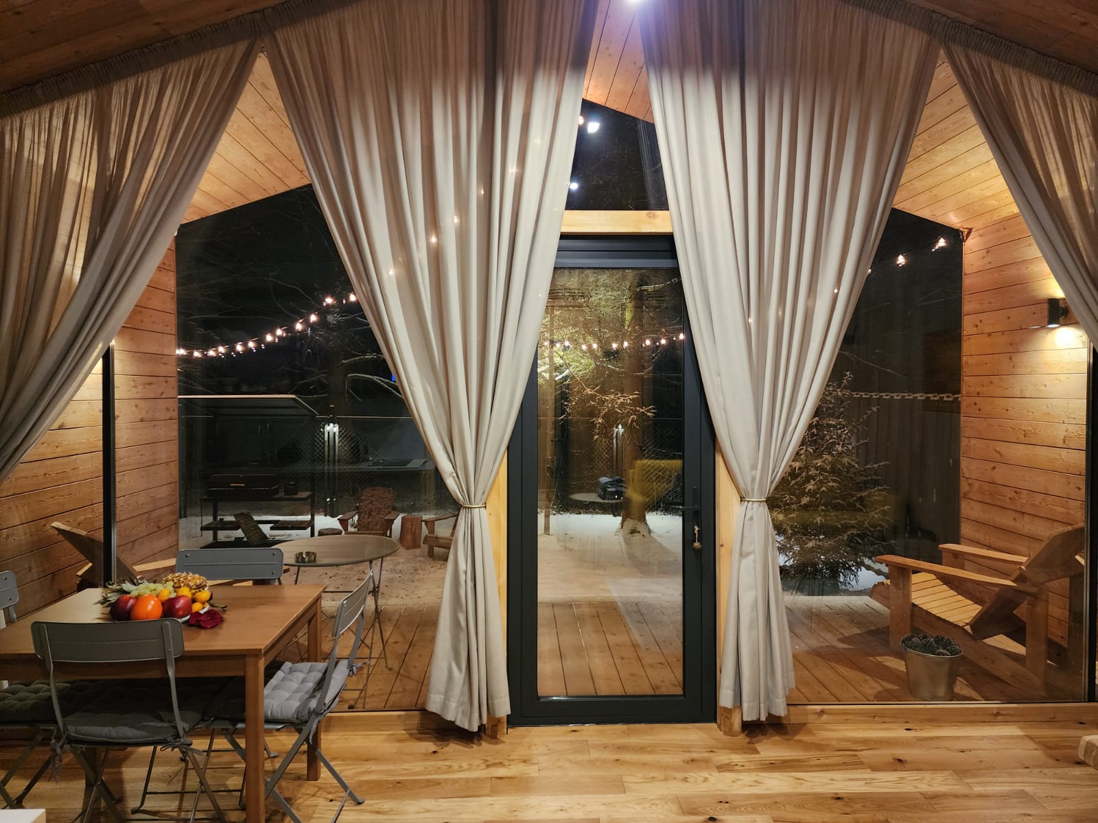 В стоимость проживания входит: Косметические средства, полотенца, халаты, тапочки, постельное белье, чайный набор, сахар, соль, перец, уголь, жидкость для розжига и инвентарь для гриля.