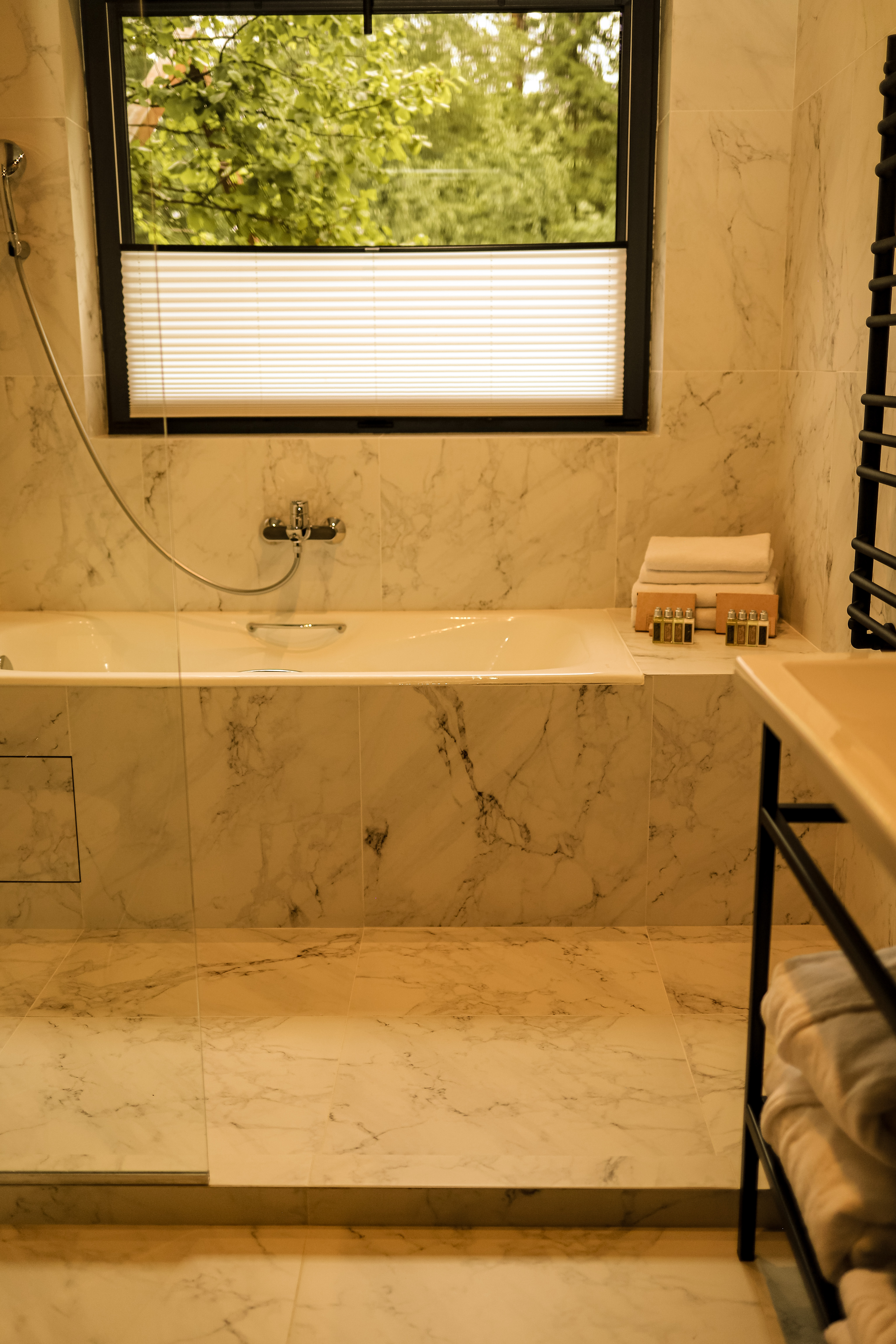 Большая ванная комната оснащена ванной, душевой зоной и биде.