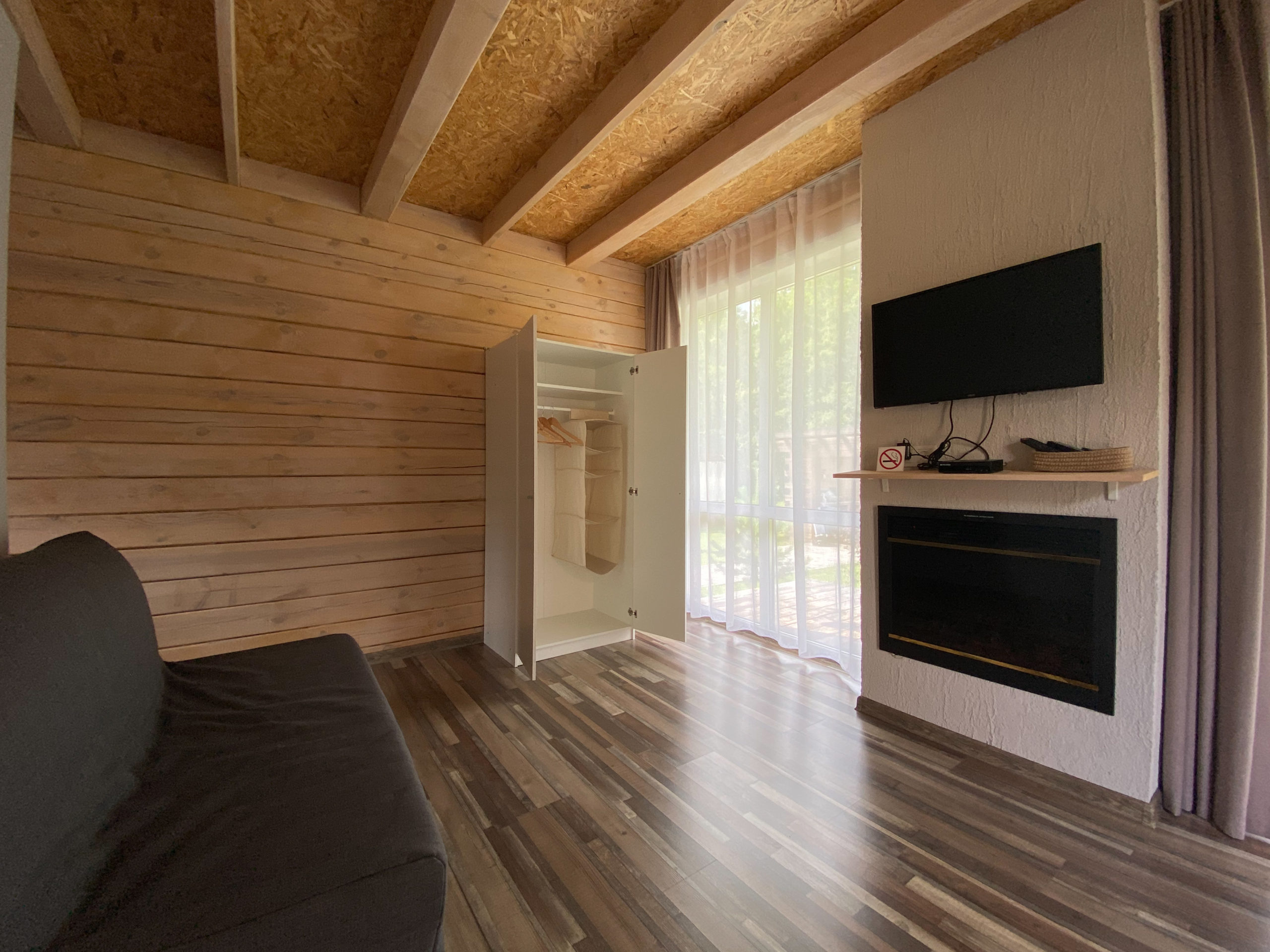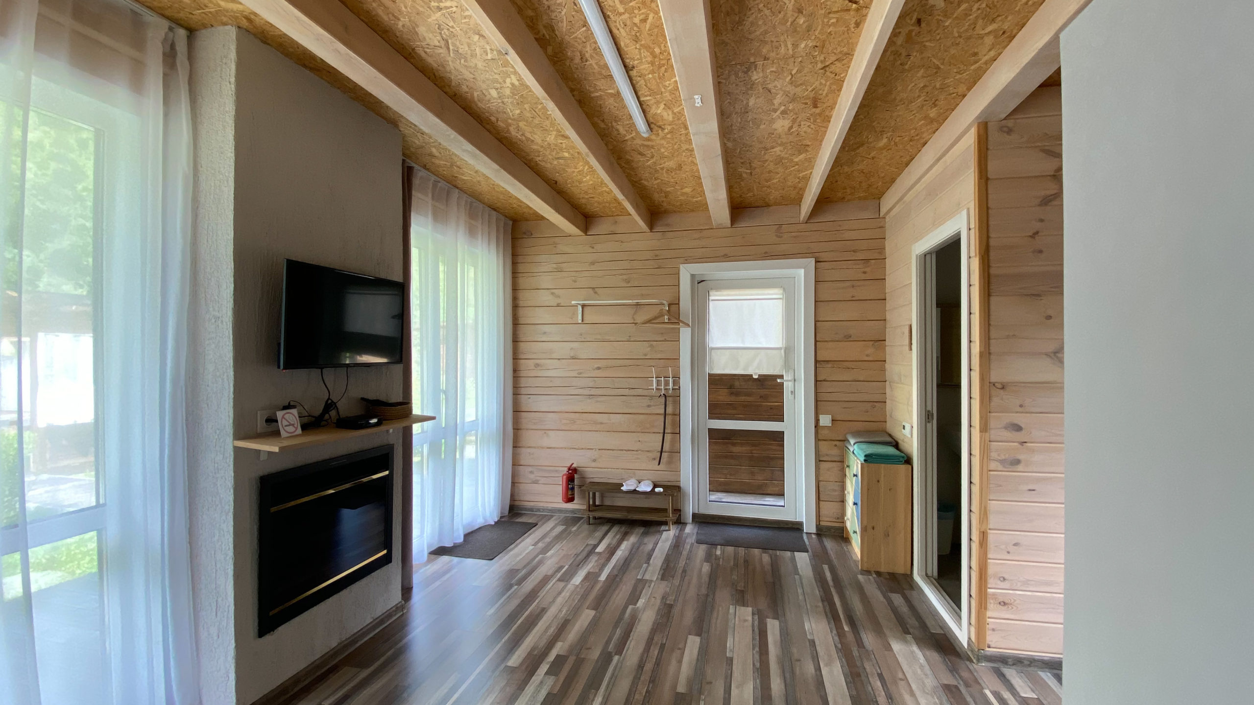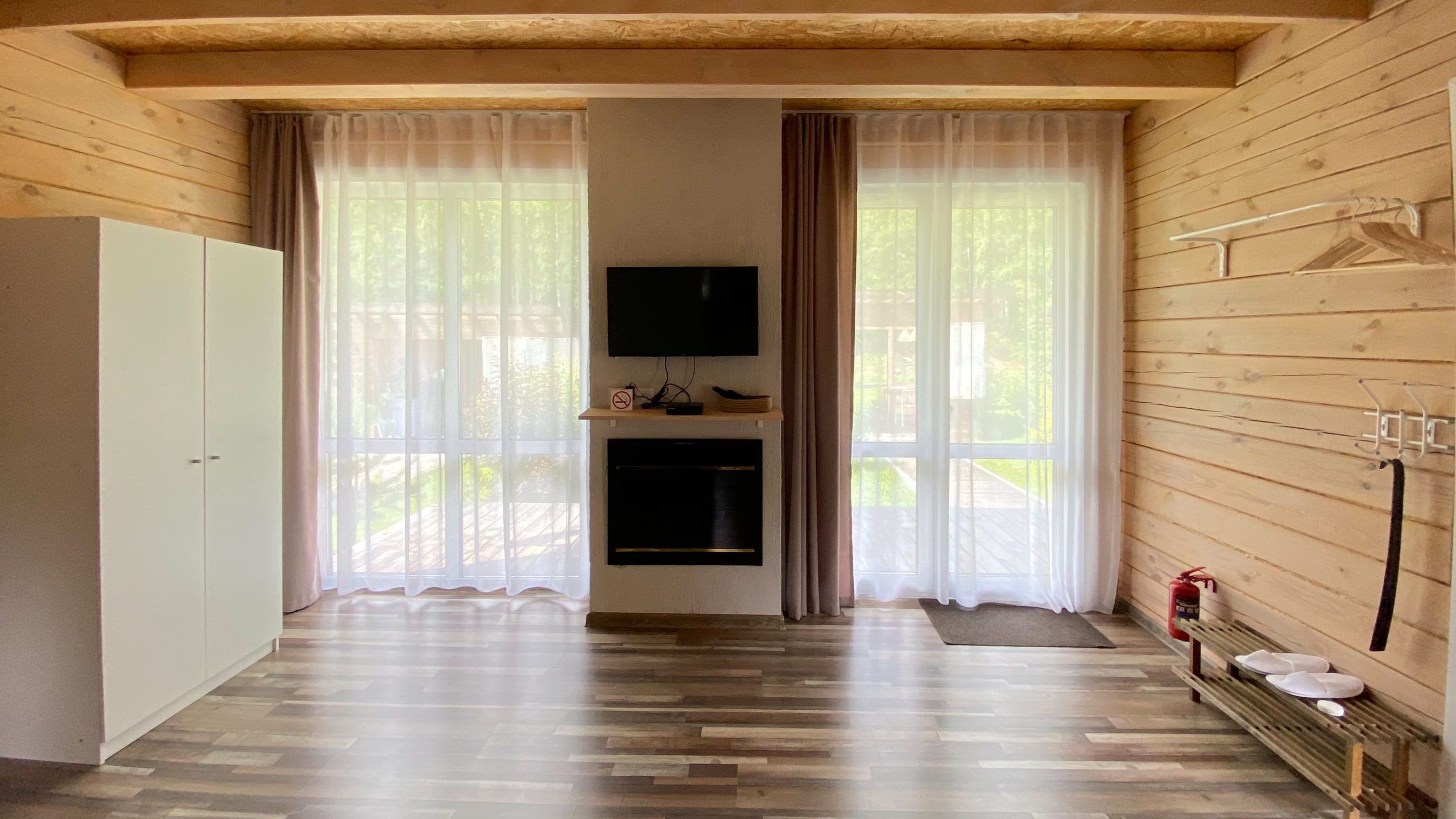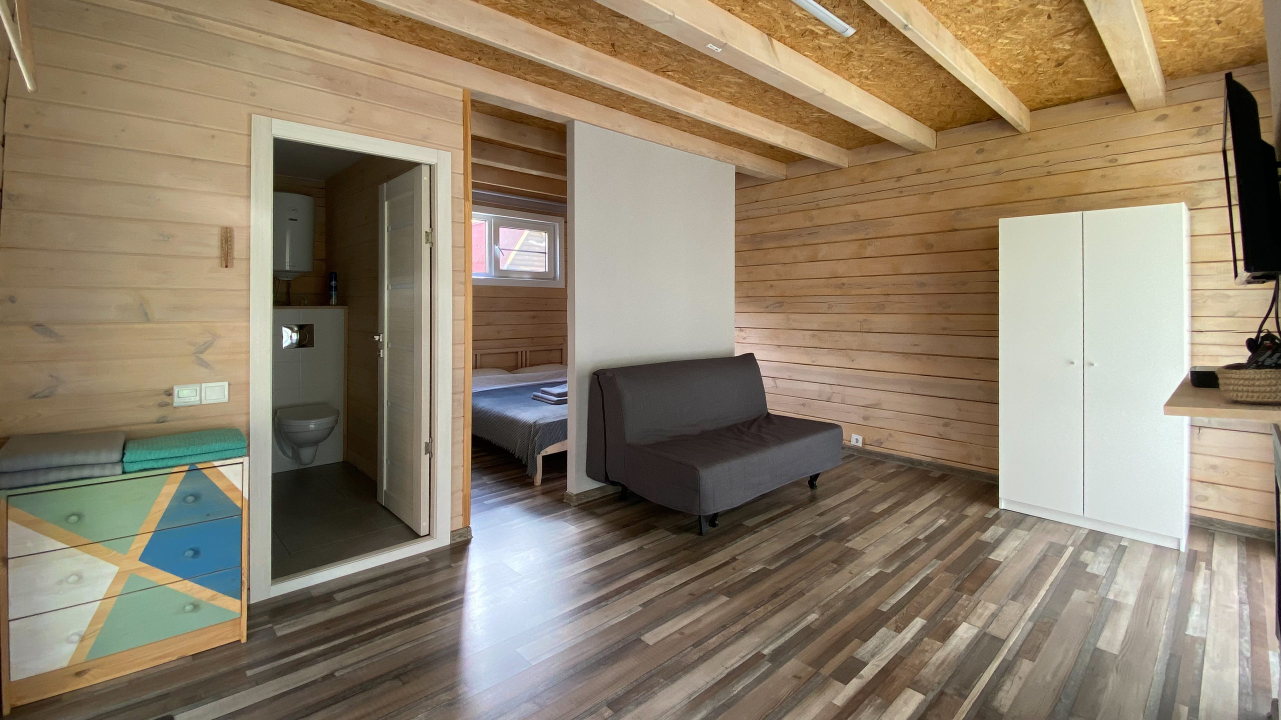 Современный дизайн гостевых домиков располагает к комфортному, тихому семейному отдыху. Мобильная связь на территории базы отдыха отсутствует.