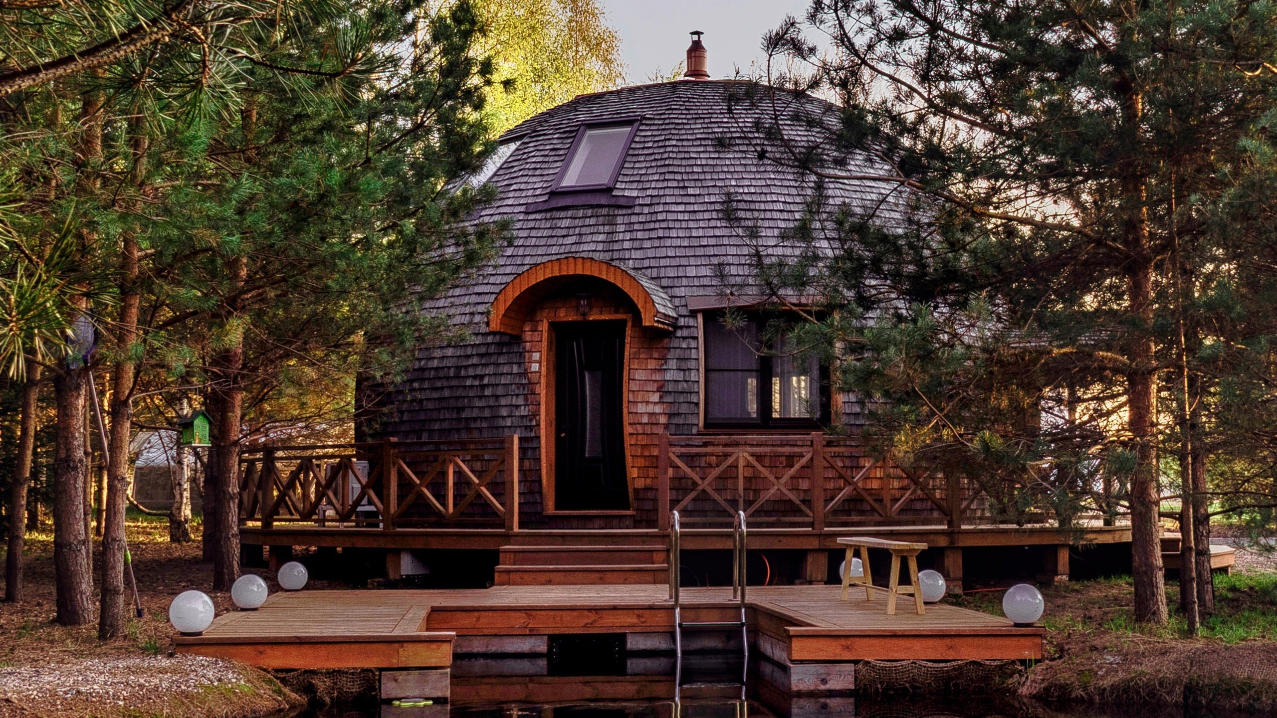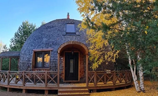 Сфера построена из экологически чистых природных материалов. 2 изолированные комнаты, 2 санузла, панорамные деревянные окна в пол, просторный холл, продуманная кухня со всей бытовой техникой, Wi-Fi, климат-контроль. Рядом с домом - зона для барбекю и девственно чистый лес.