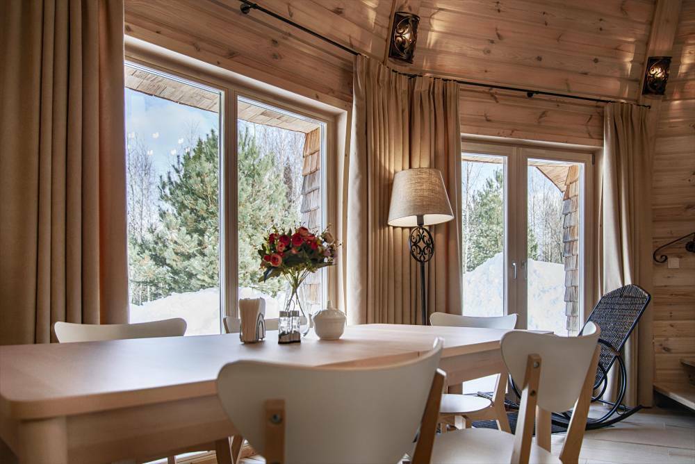 В каждом доме есть Wi-Fi, климат-контроль, панорамные окна и спальные места на выбор.