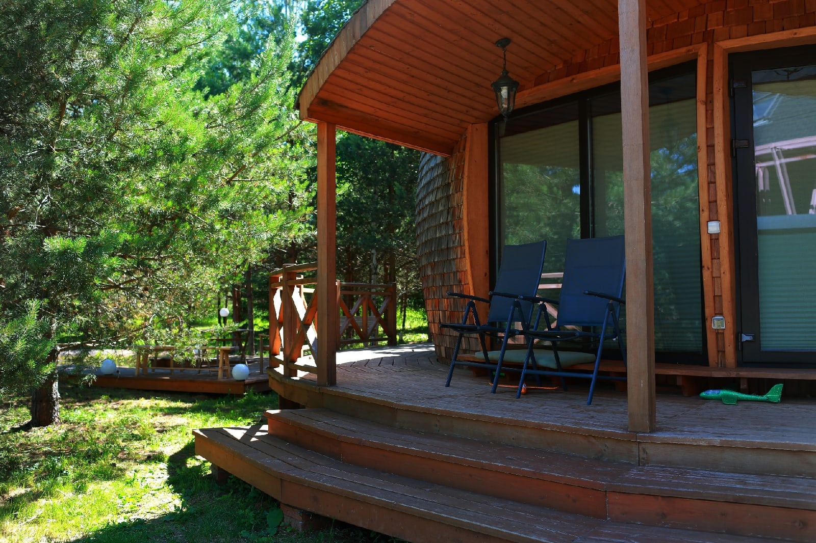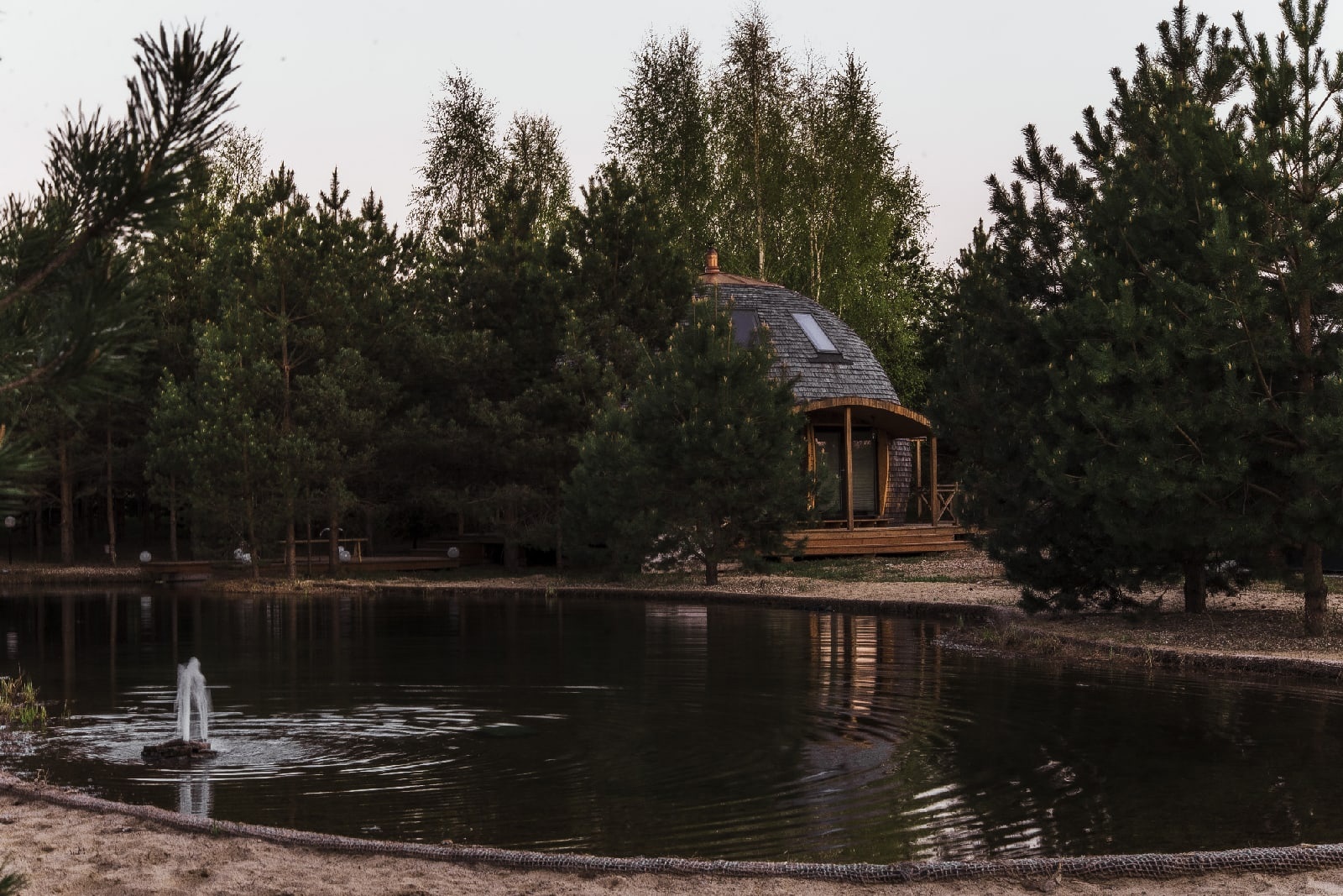 Сфера построена из экологически чистых природных материалов. 3 изолированные комнаты, 2 санузла, панорамные деревянные окна в пол, просторный холл, продуманная кухня со всей бытовой техникой, Wi-Fi, климат-контроль. Рядом с домом - зона для барбекю и девственно чистый лес.