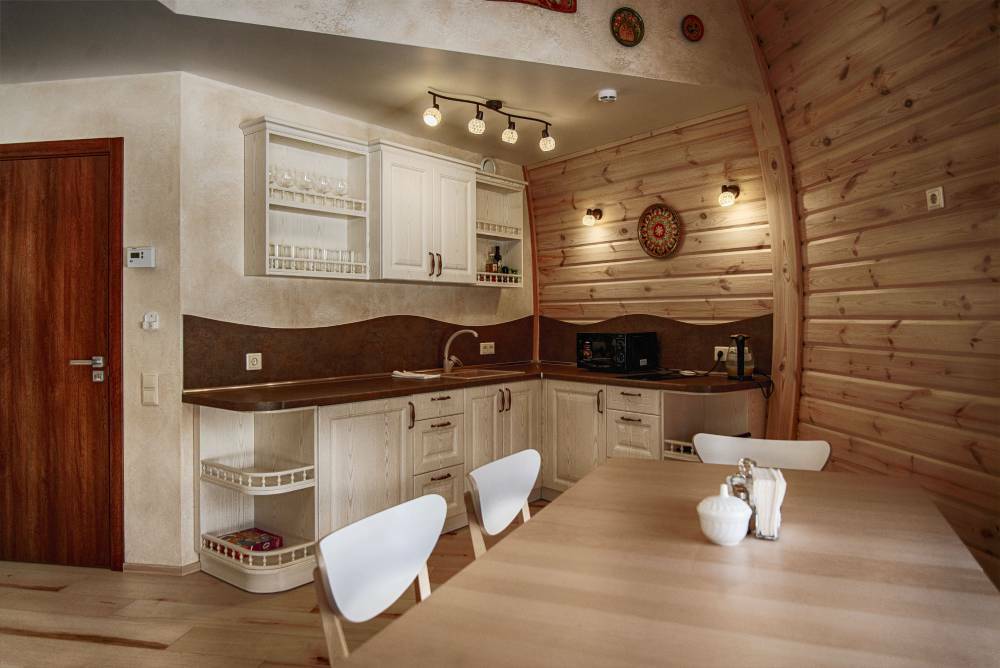 В гостевых домах Sfera 9.1 и Sfera 9.2 имеются полноценные уютные и просторные кухни оборудованные всем необходимым для самостоятельного приготовления еды. Вам обязательно придется по душе стильный дизайн и продуманный функционал наших кухонь.