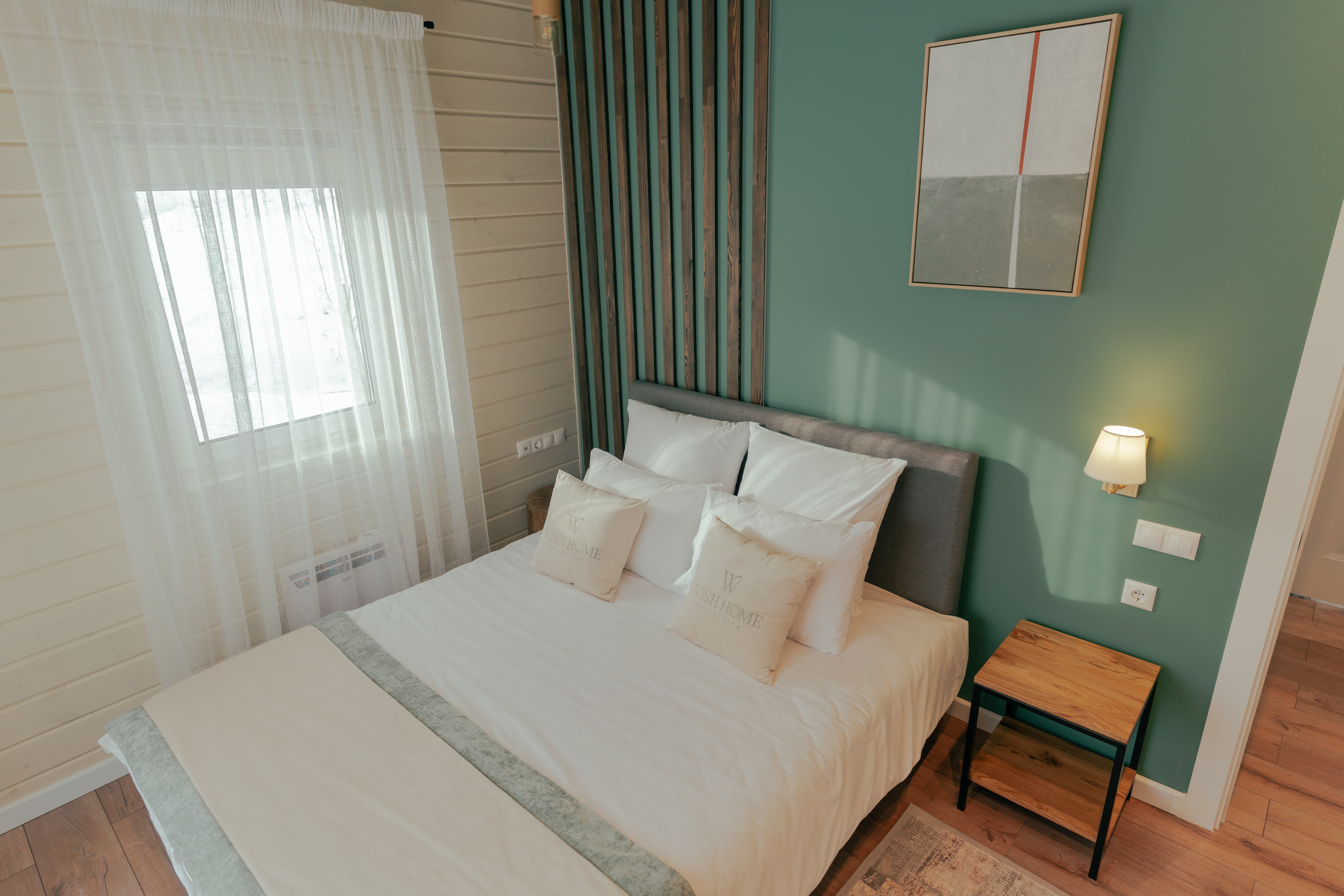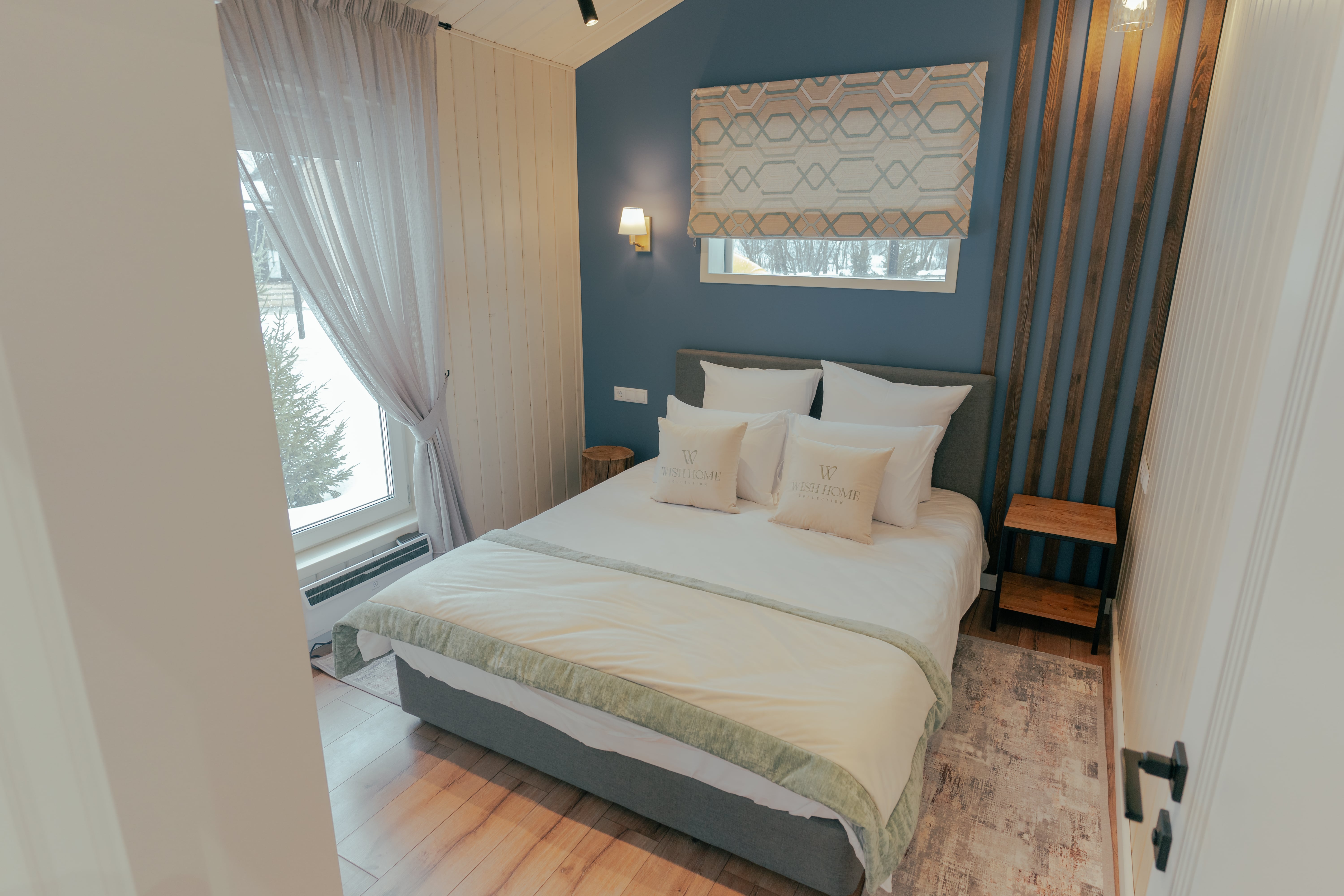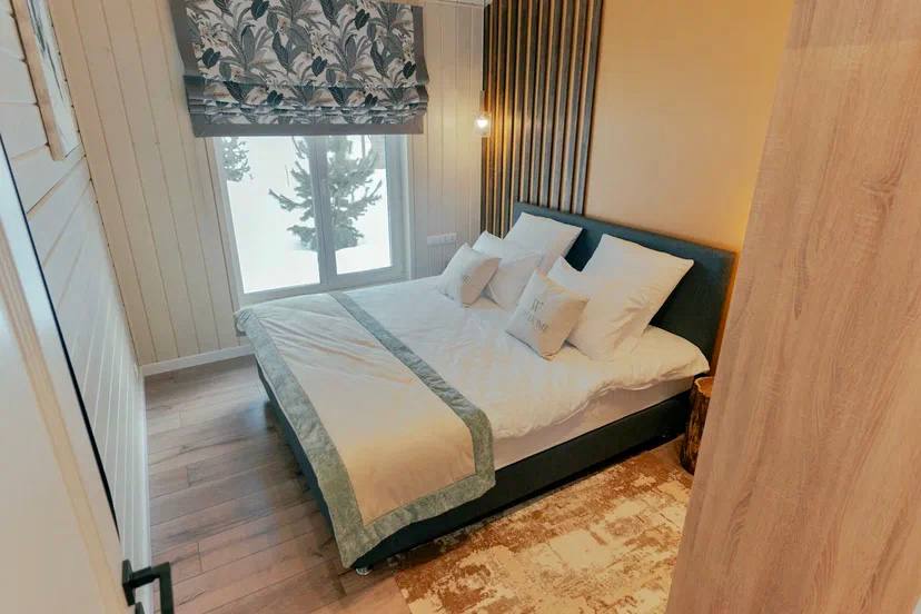 - Просторную спальню с двухместной кроватью и удобным ортопедическим матрасом