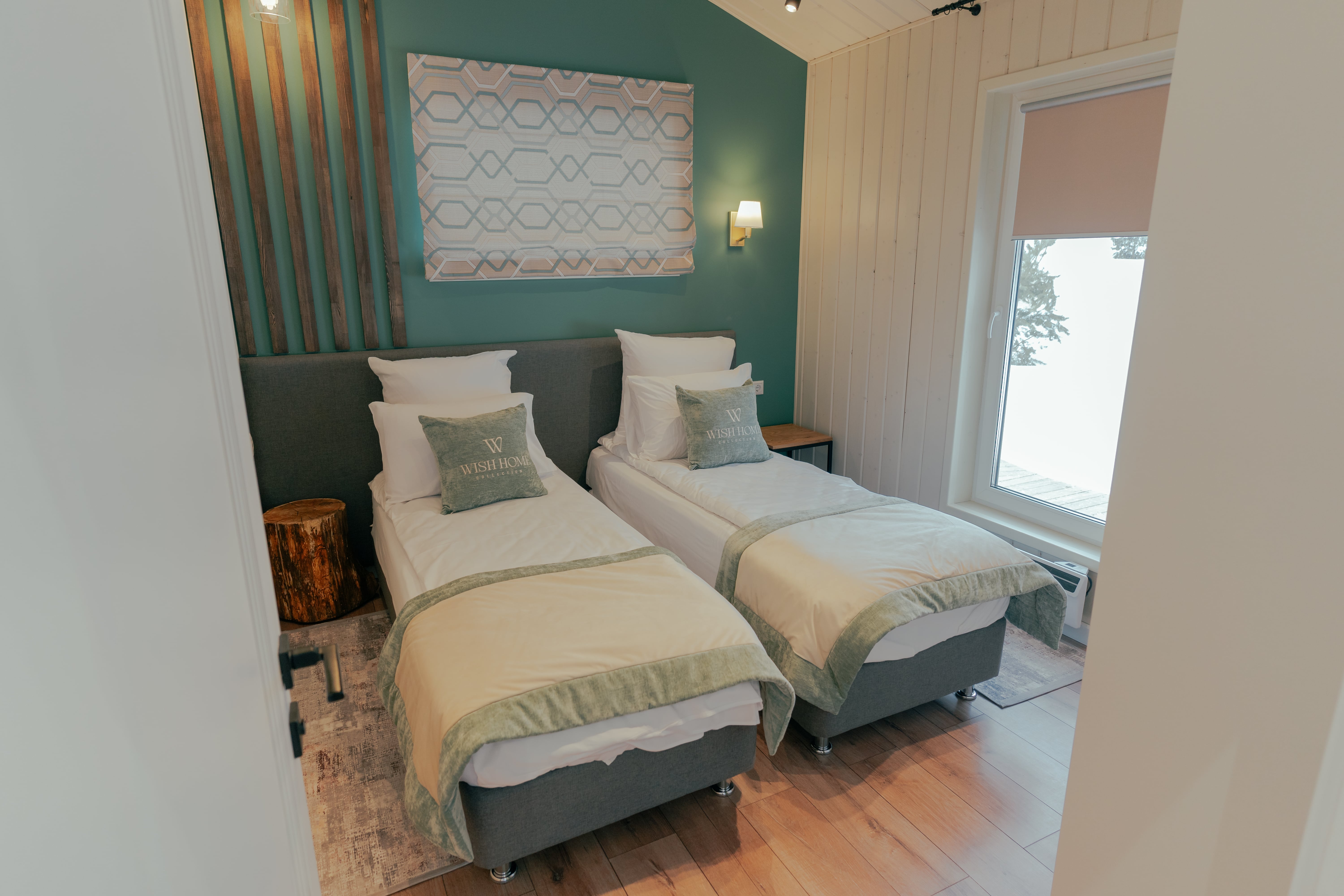 - Спальню с двумя раздельными кроватями и удобными ортопедическими матрасами