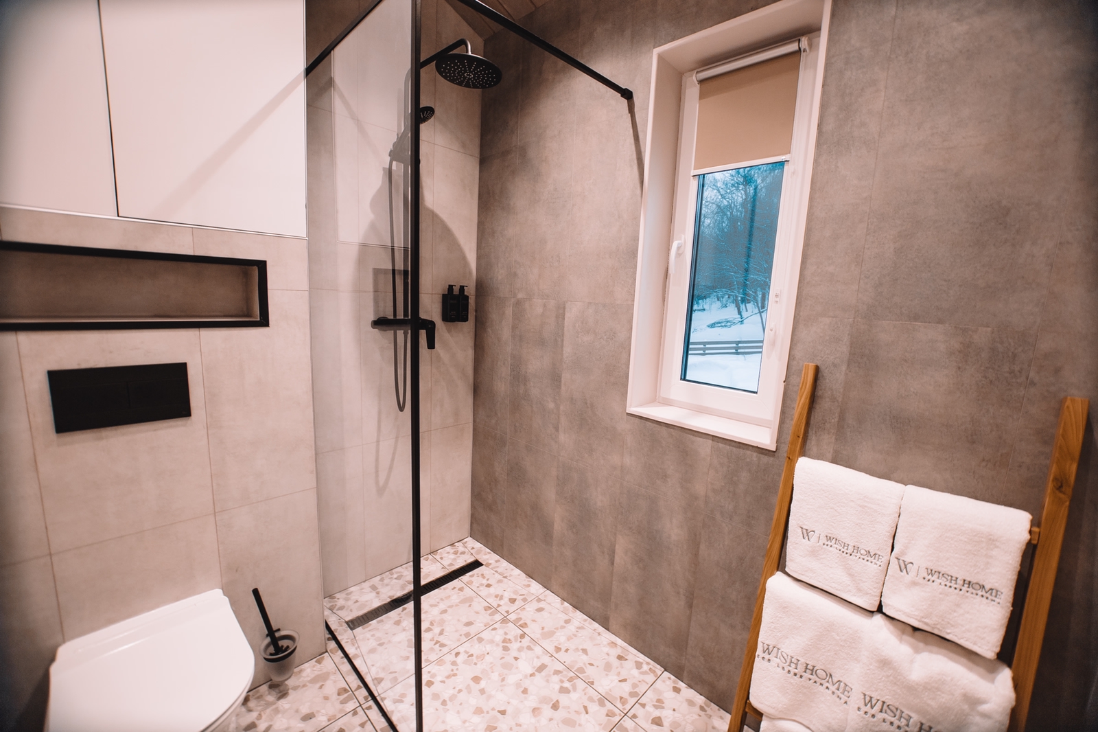 Светлый лодж с ванной с панорамными окнами, террасой, мангальной зоной на свежем воздухе – для комфортного размещения от 2 до 4 гостей.