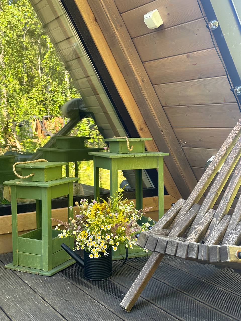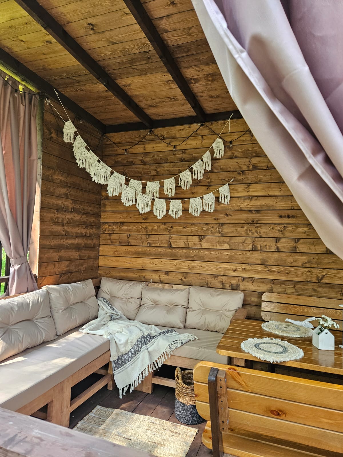 - Есть раскладной столик и винница для праздничных завтраков и романтических ужинов; пледы, в которые можно укутаться и посидеть на патио.