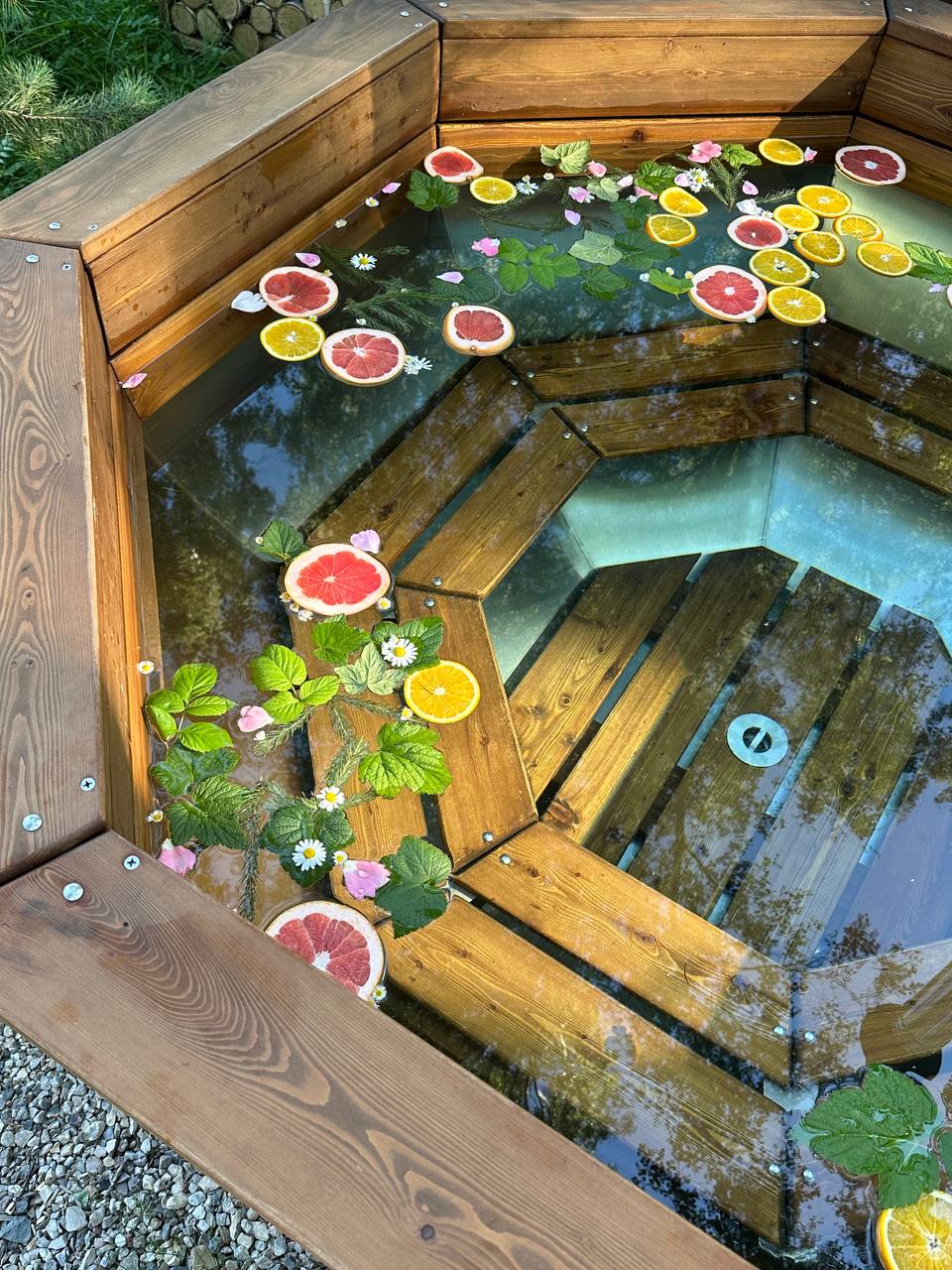 Кроме того, около каждого домика есть сибирский банный чан, где вы можете расслабиться и насладиться комфортным парением с запаркой из ароматных трав. Стоимость услуги составляет 5500 рублей.