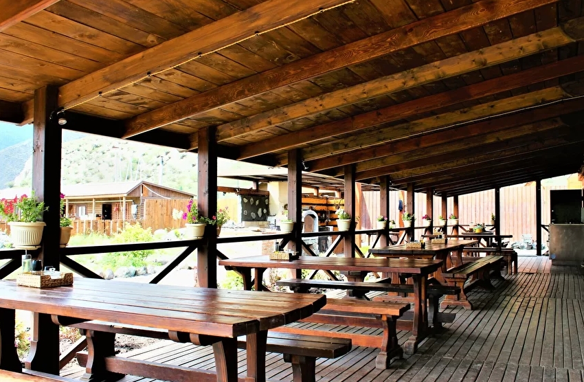 Вас ждут уютные благоустроенные национальные алтайские жилища, гостевые дома, коттеджи, беседки на берегу реки Катунь, кафе, баня, а также экскурсии и развлекательная программа.