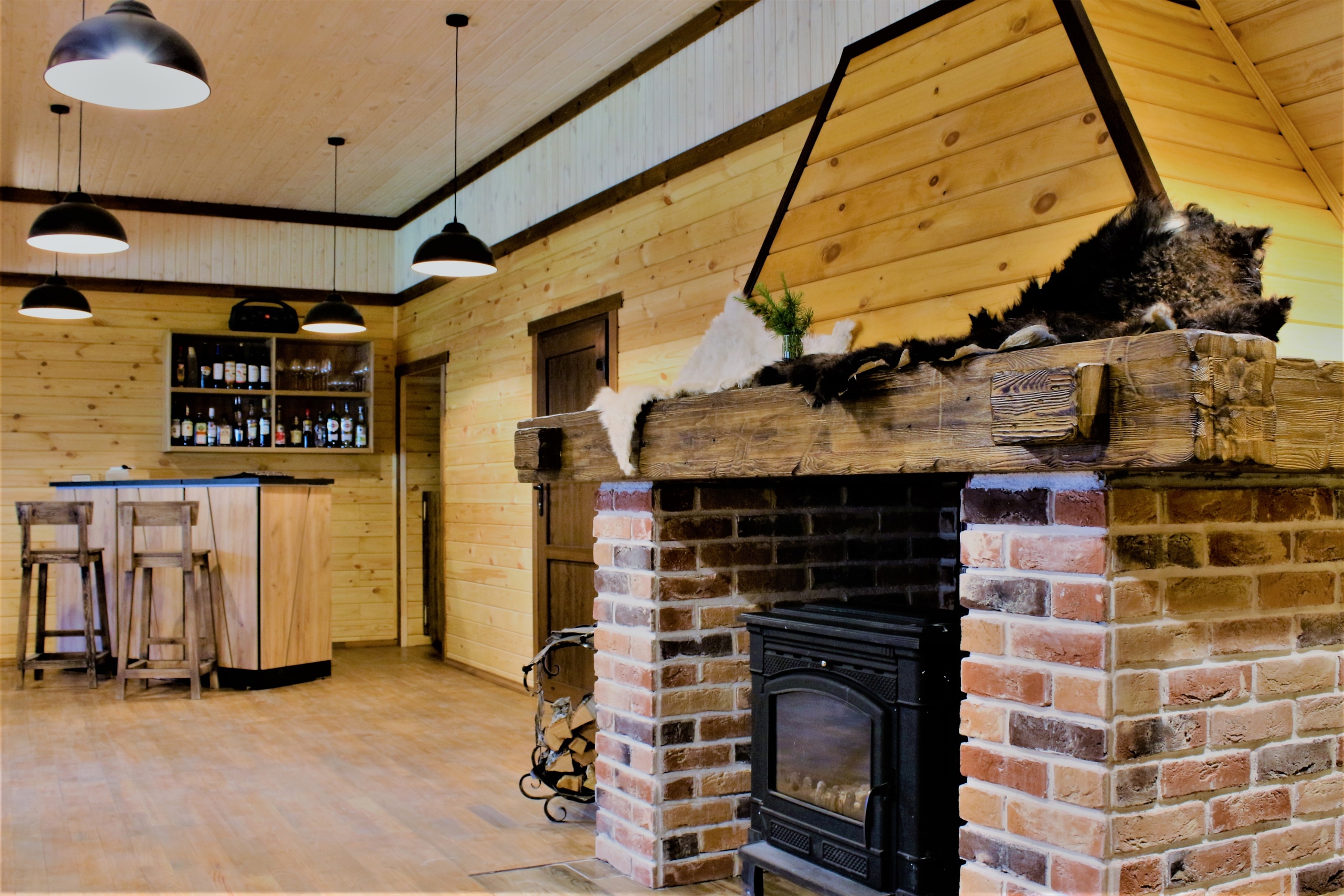 В одной комнате большая двуспальная кровать, в другой - камин и раскладной двухместный диван. Один санузел.