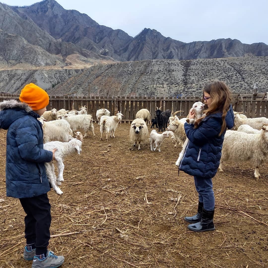 - прогулки по ровной местности (по территории фермы вдоль Катуни),