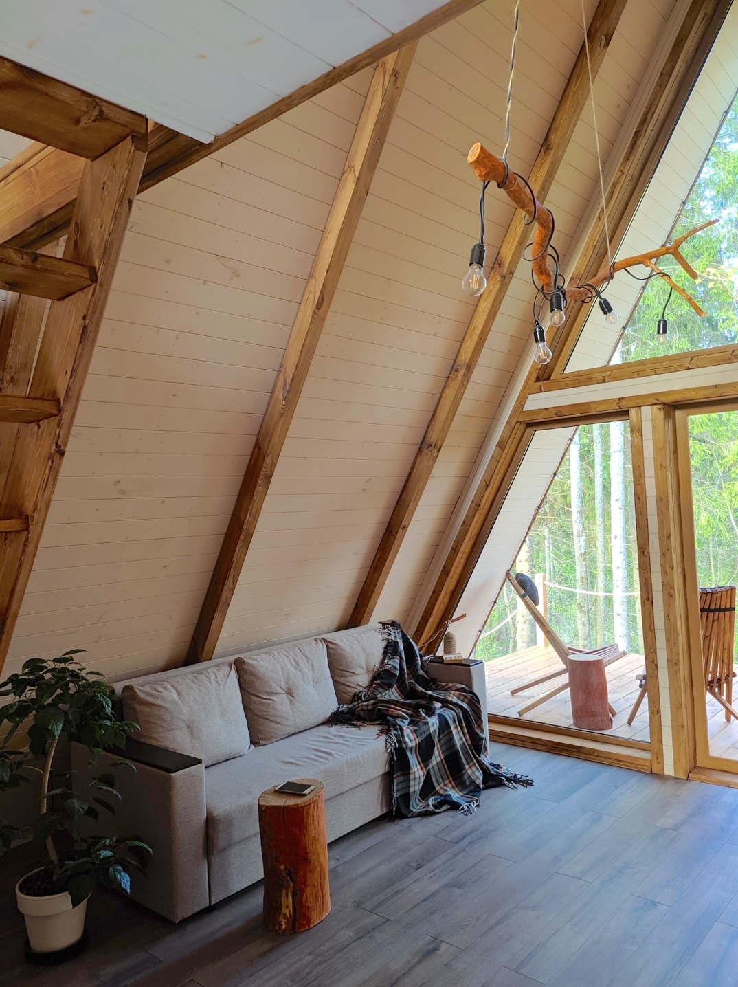 Глэмпинг AirFrame S предлагает своим гостям уникальный опыт проживания в треугольном доме, который сочетает в себе комфорт и близость к природе. Здесь вы сможете провести как романтические выходные, так и встречу друзей, либо это будет тихое семейное торжество или уютное уединение.