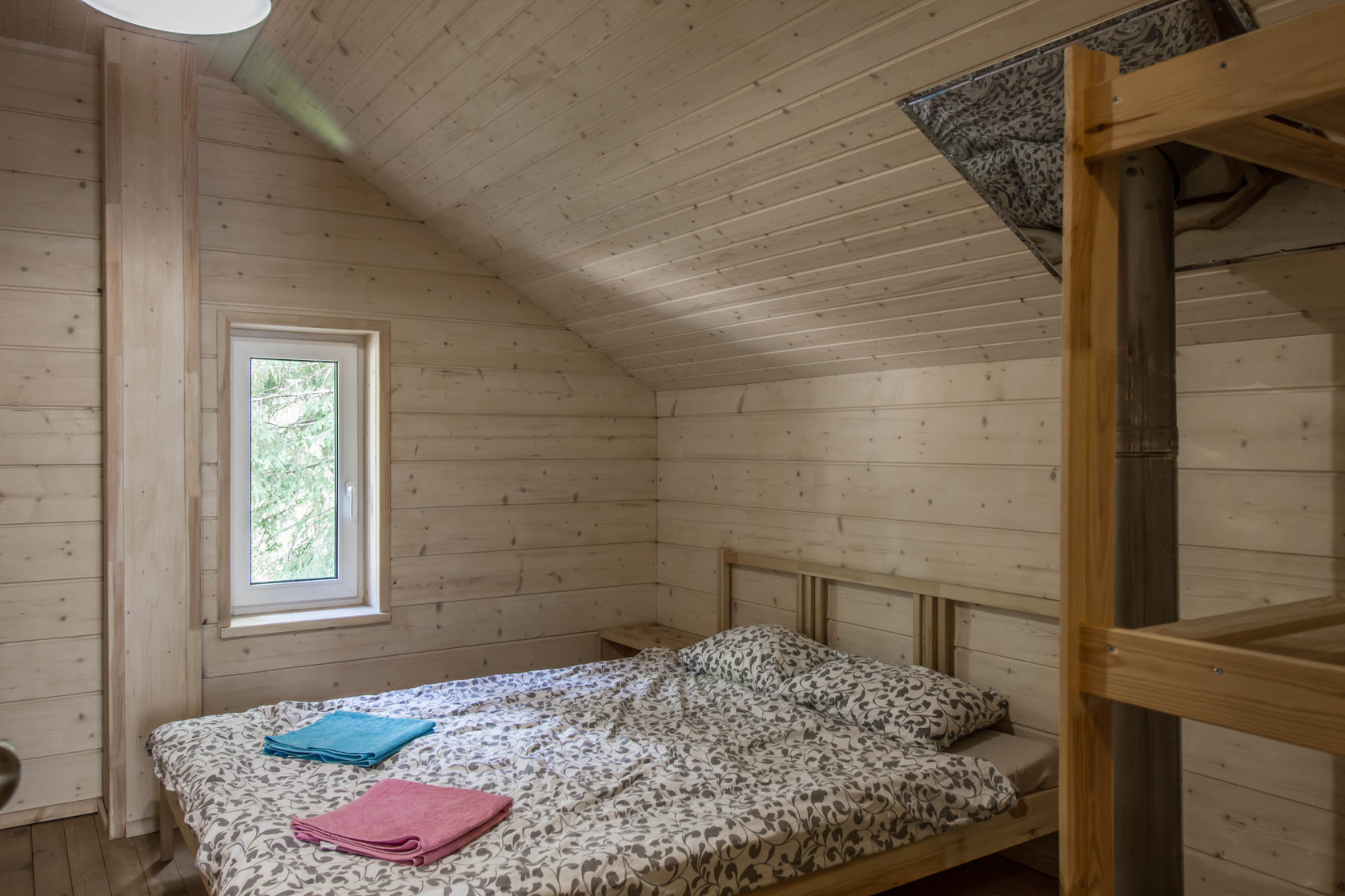 - Совместный санузел: душ(бойлер), туалет, раковина + дровяная сауна.