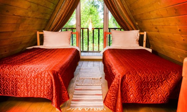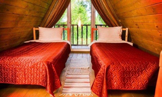 - Внутри домиков и номеров