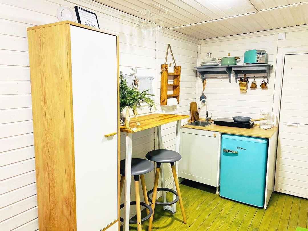 - есть все необходимое для приготовления самых романтичных завтраков, обедов и ужинов на природе: тостер, индукционная плита, чайник, холодильник с морозильной камерой, необходимый набор посуды, деревянные чашки/ложки/вилки и конечно же бокалы для шампанского, вина и коктейлей;