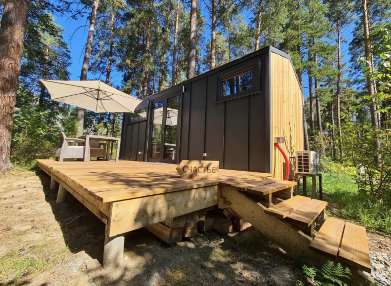 Удобства: бесплатный Wi-Fi, теплый пол, кондиционер, питьевая вода из артезианской скважины, проектор (по запросу), парогенератор (по запросу), отдельный вход, крытая терраса с садовой мебелью.