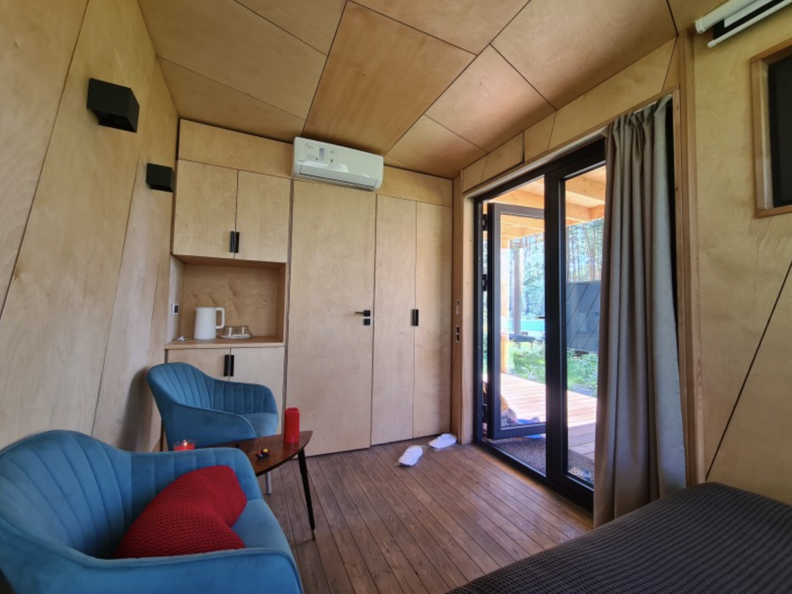 Удобства: бесплатный Wi-Fi, теплый пол, кондиционер, питьевая вода из артезианской скважины, проектор (по запросу), парогенератор (по запросу), отдельный вход, крытая терраса, мебель на террасе.