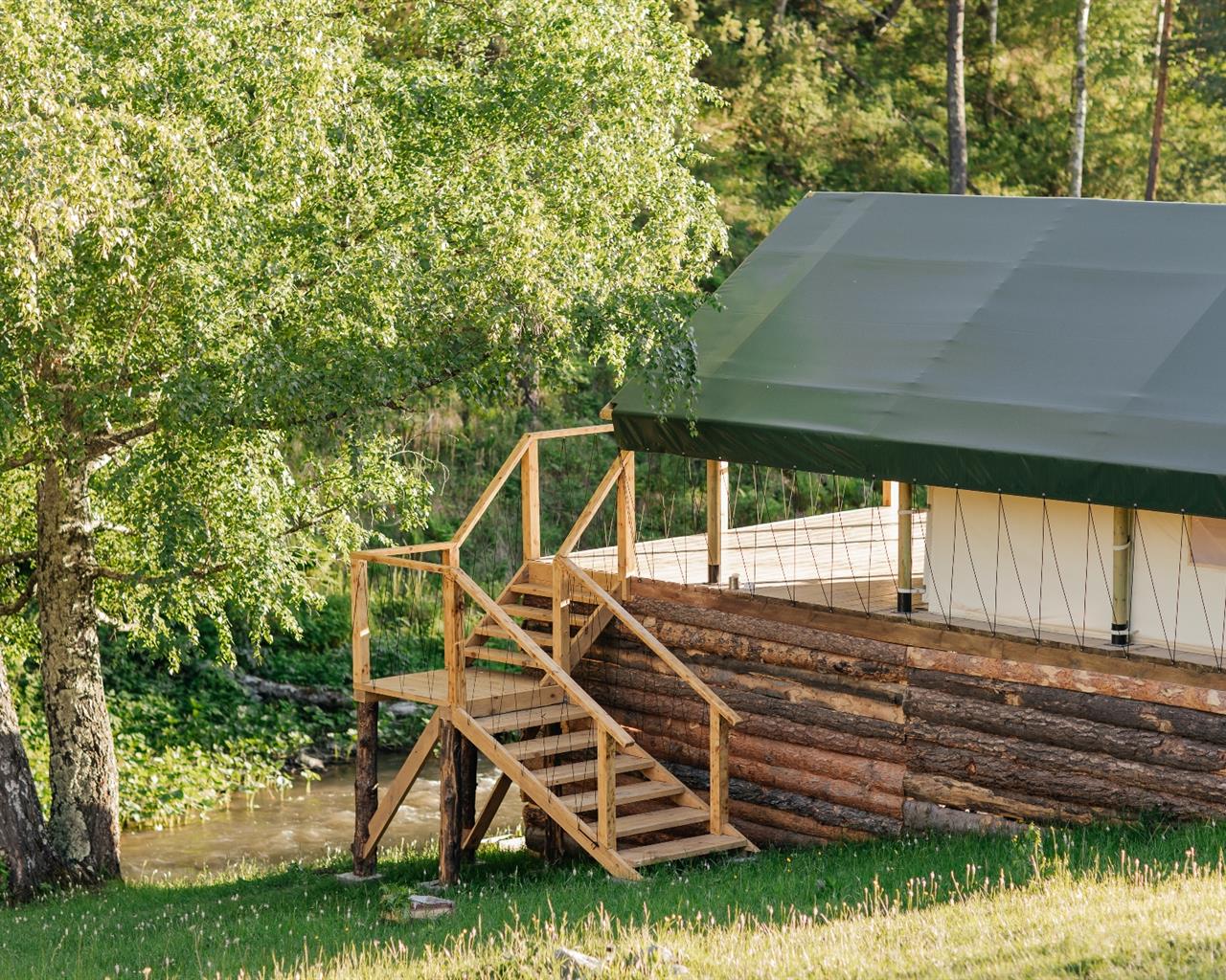 «Бадан глэмпинг» расположен на берегу горной реки Куюм, под склоном горы. На территории глэмпинга располагаются 6 летних сафари-тентов и круглогодичное шале A-frame в форме треугольника. Они оснащены всеми удобствами для комфортного проживания. Личный санузел, мягкая теплая кровать, зона отдыха и неповторимый вид на горную реку.