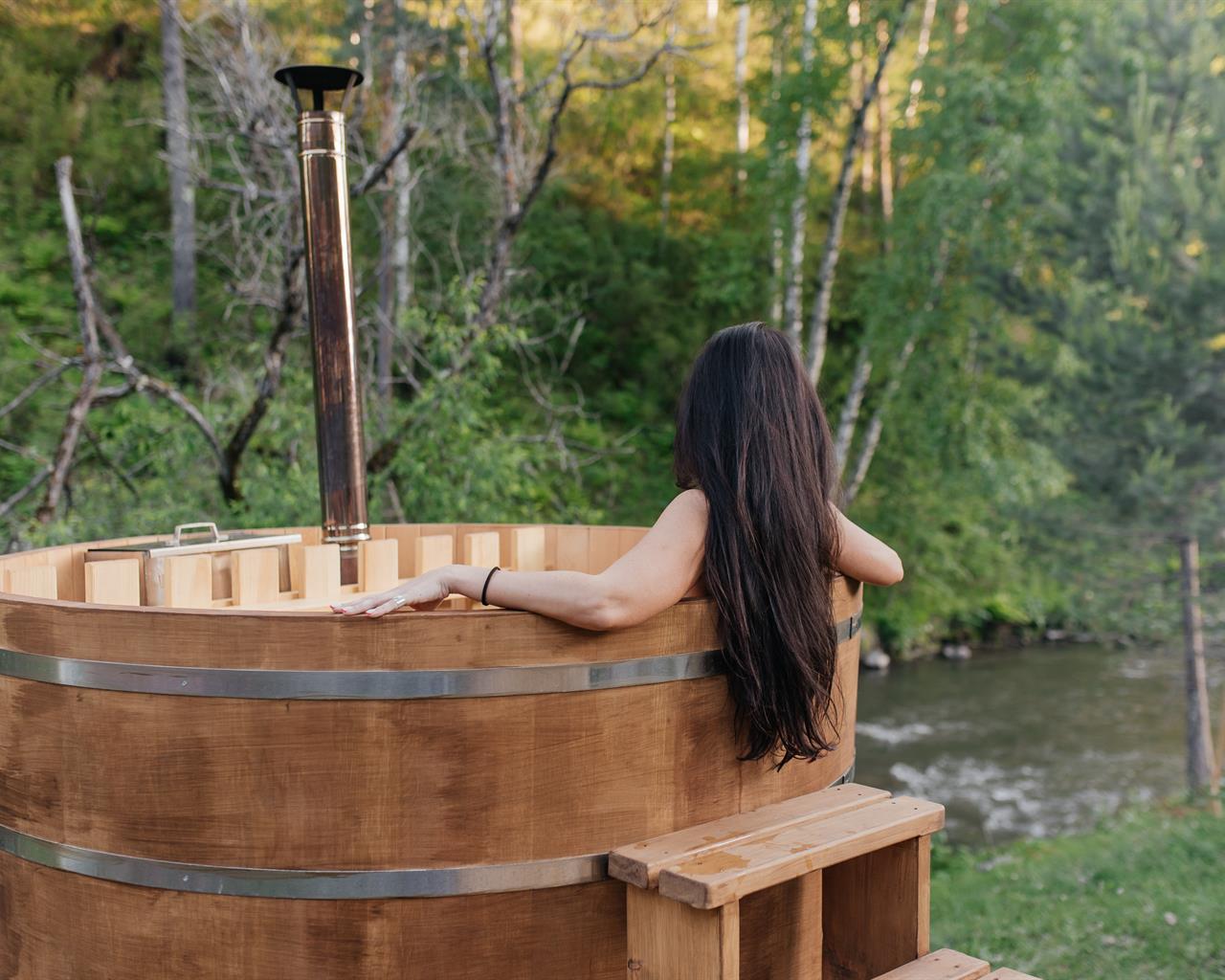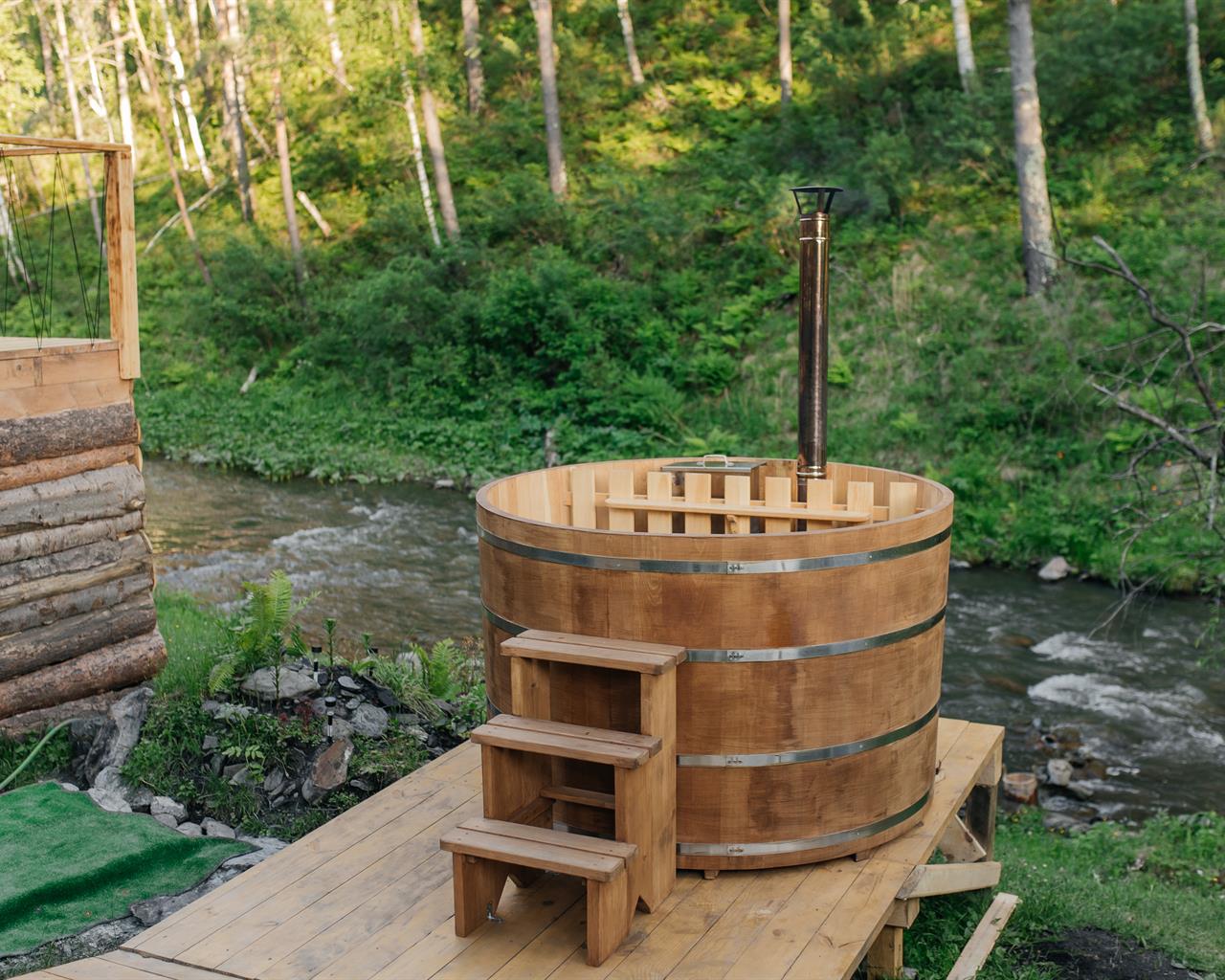 Погрейтесь в кедровой купели с отваром алтайских трав и ароматным пихтовым веником. В любую погоду вас ждет максимальное расслабление и прекрасный вид на реку Куюм и склоны Алтайских гор.
