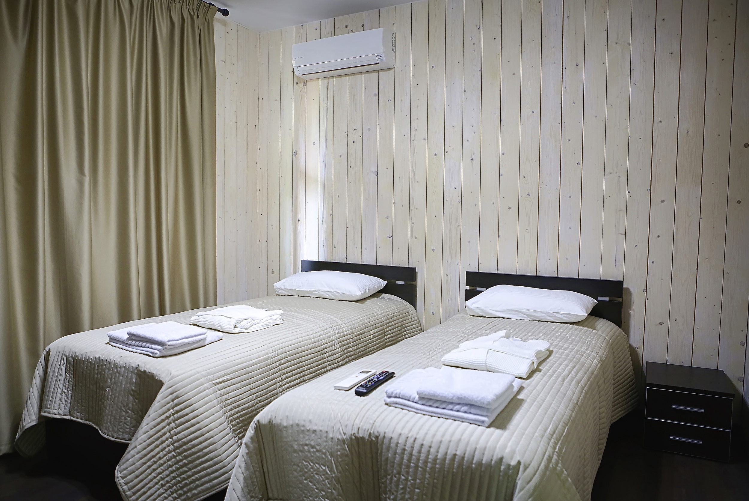 На территории расположено 20 коттеджей различной вместимости (от 4 до 8 человек), дом VIP с личной сауной и комнатой для сопровождающего персонала. Также к вашим услугам комфортабельные номера в основном корпусе.