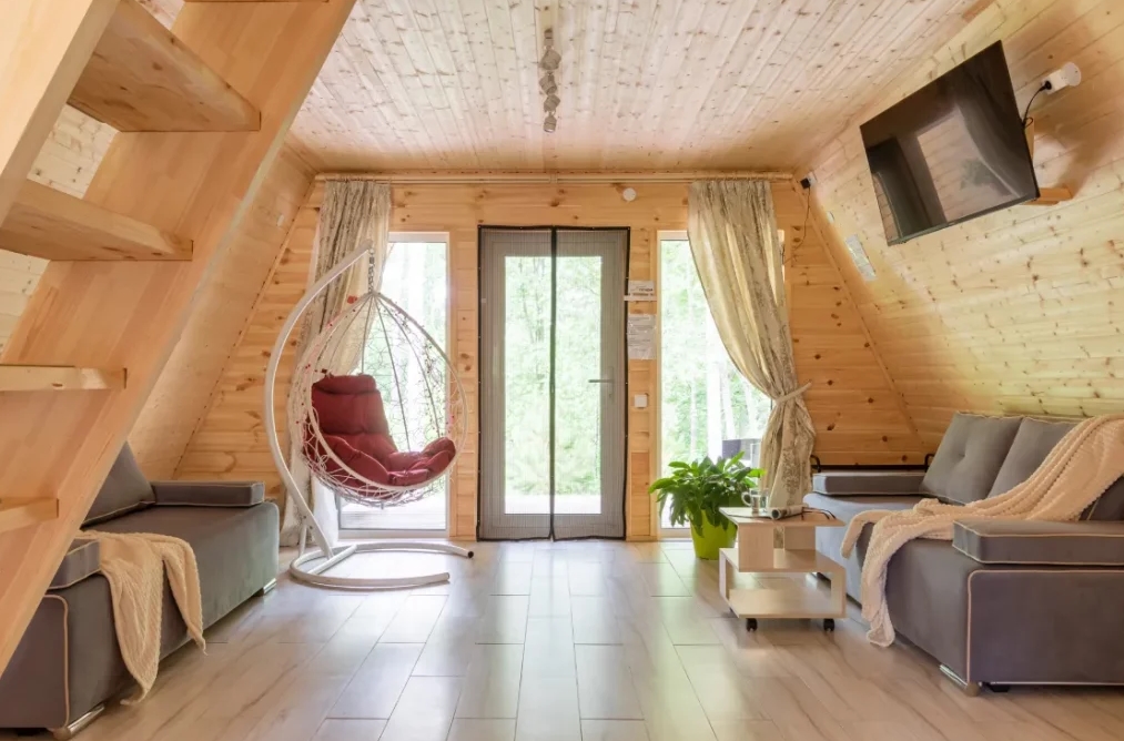 Пять треугольных домиков — шале в Светлом рядом с Красным озером: 10 минут пешком.