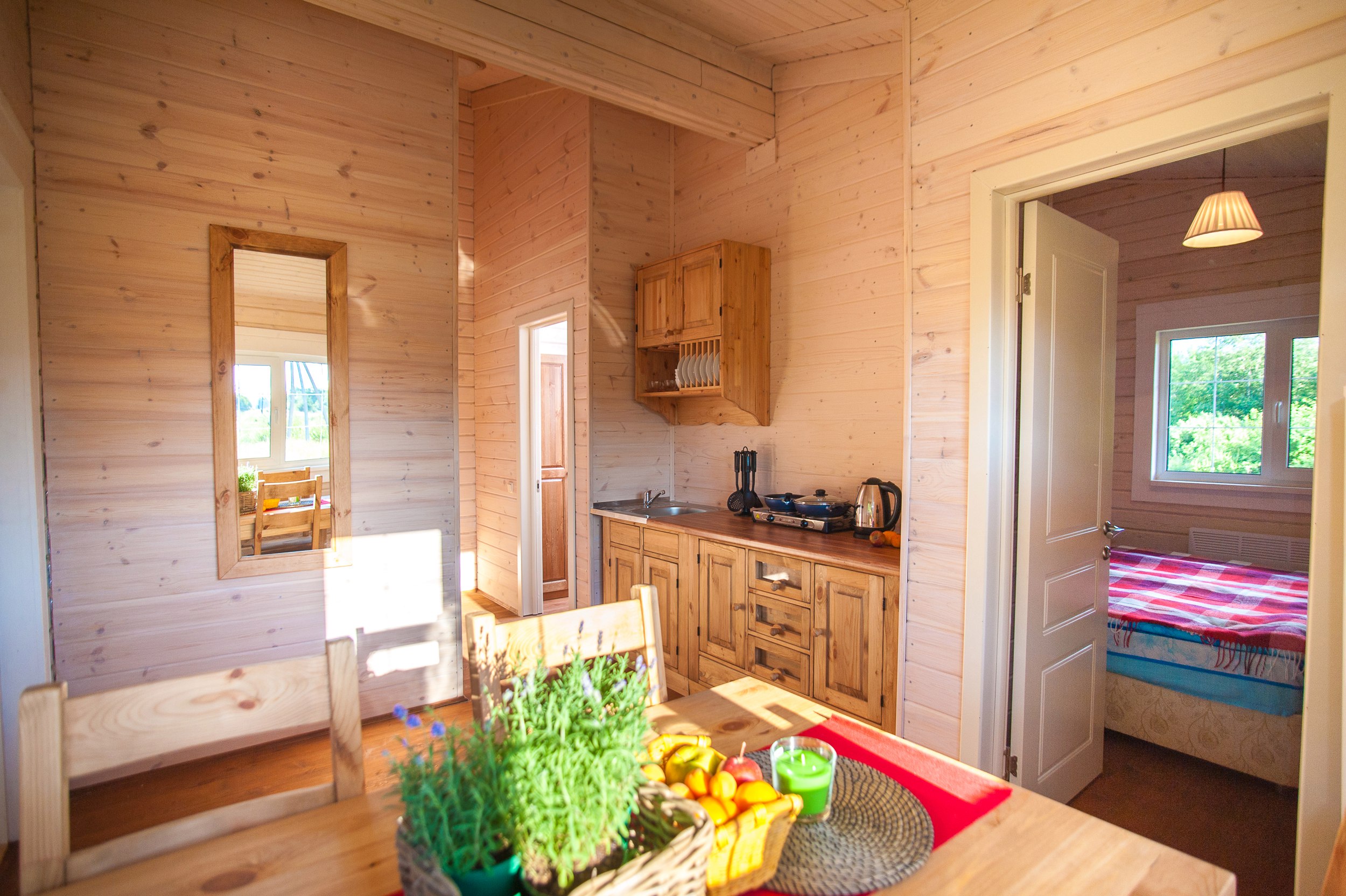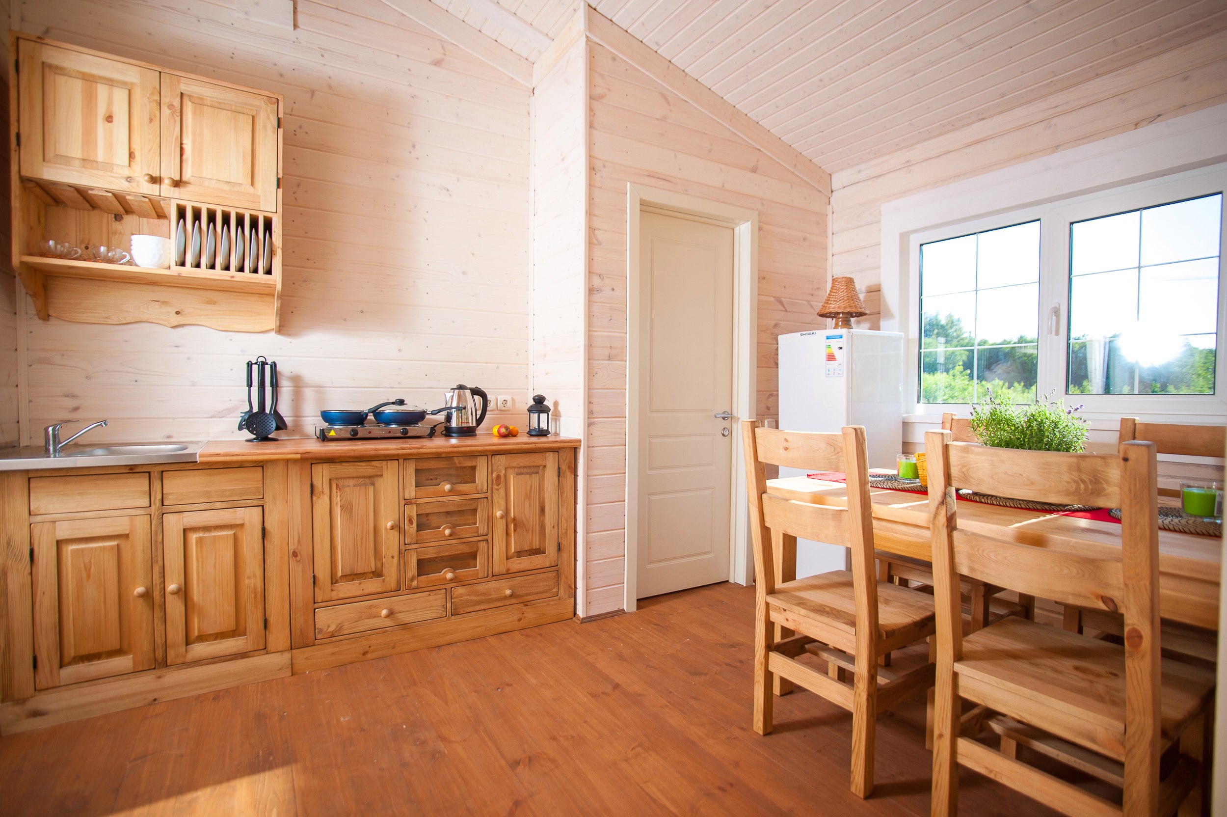 Русский дом - в этом словосочетании заложен тот дух, который и принято называть исконно русским: надёжный, гостеприимный, хозяйственный, крепкий и добрый. Крепкое дерево стен словно обнимает Вас сразу по прибытии и говорит: «Всё будет хорошо, просто отдыхай и дай мне позаботиться о тебе». Особая атмосфера бревенчатого дома не сравнима ни с чем, и Вы словно попадаете в старые времена, когда трава была зеленее, а деревья выше. Однако при этом каждый дом оборудован всем необходимым и комфортен в проживании. Особенно порадует Вас оборудованная кухня.