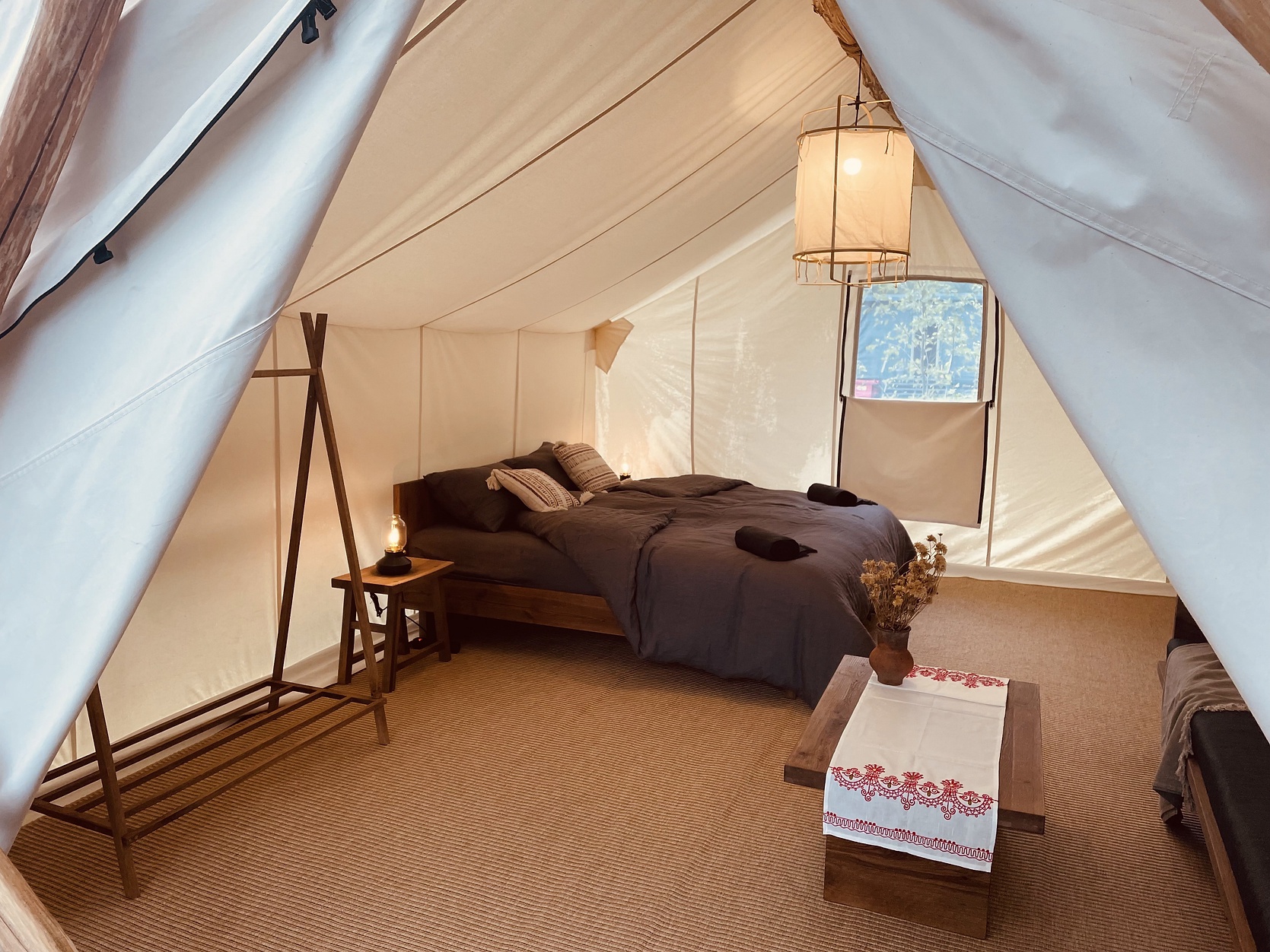 В палатке:
