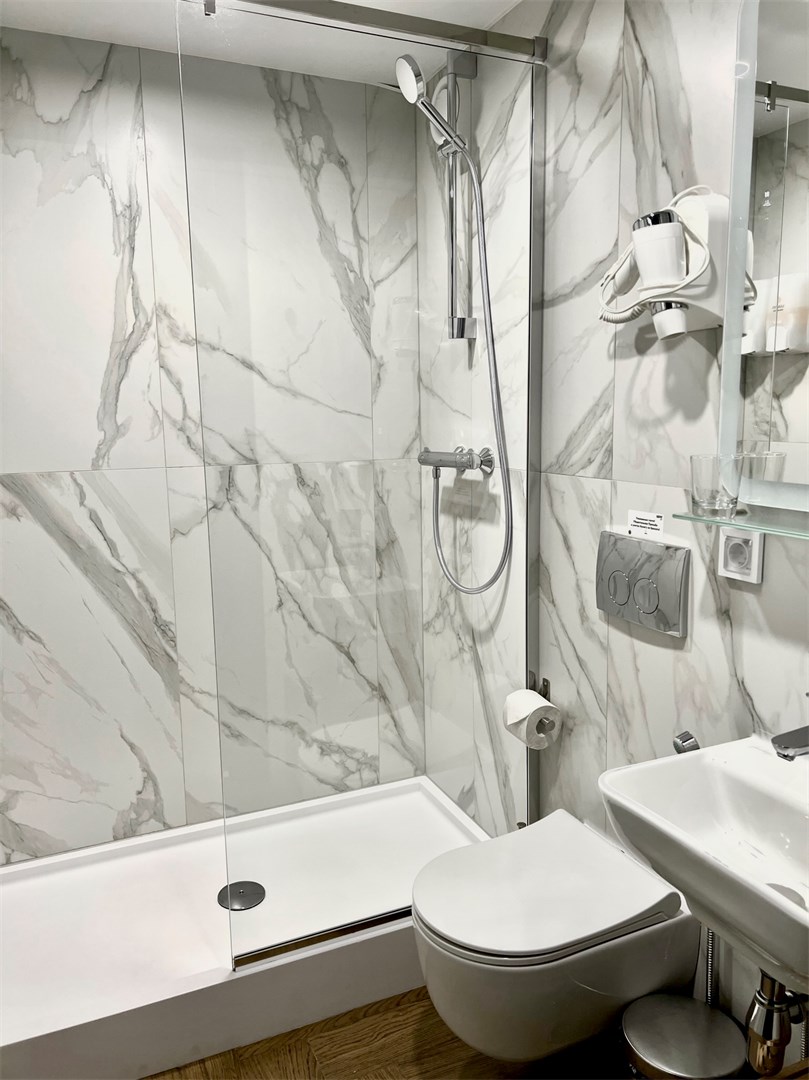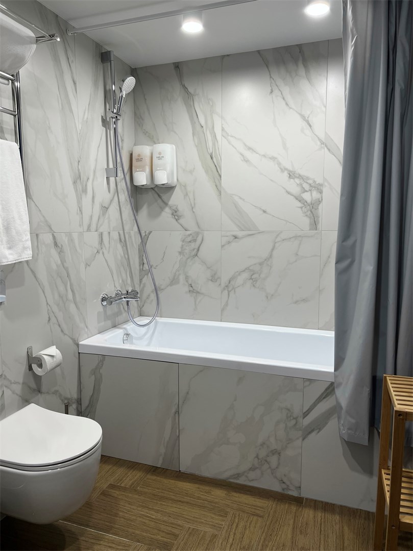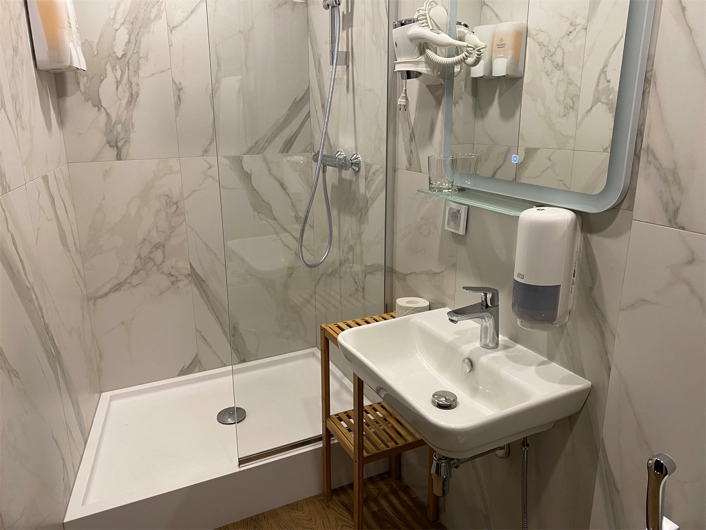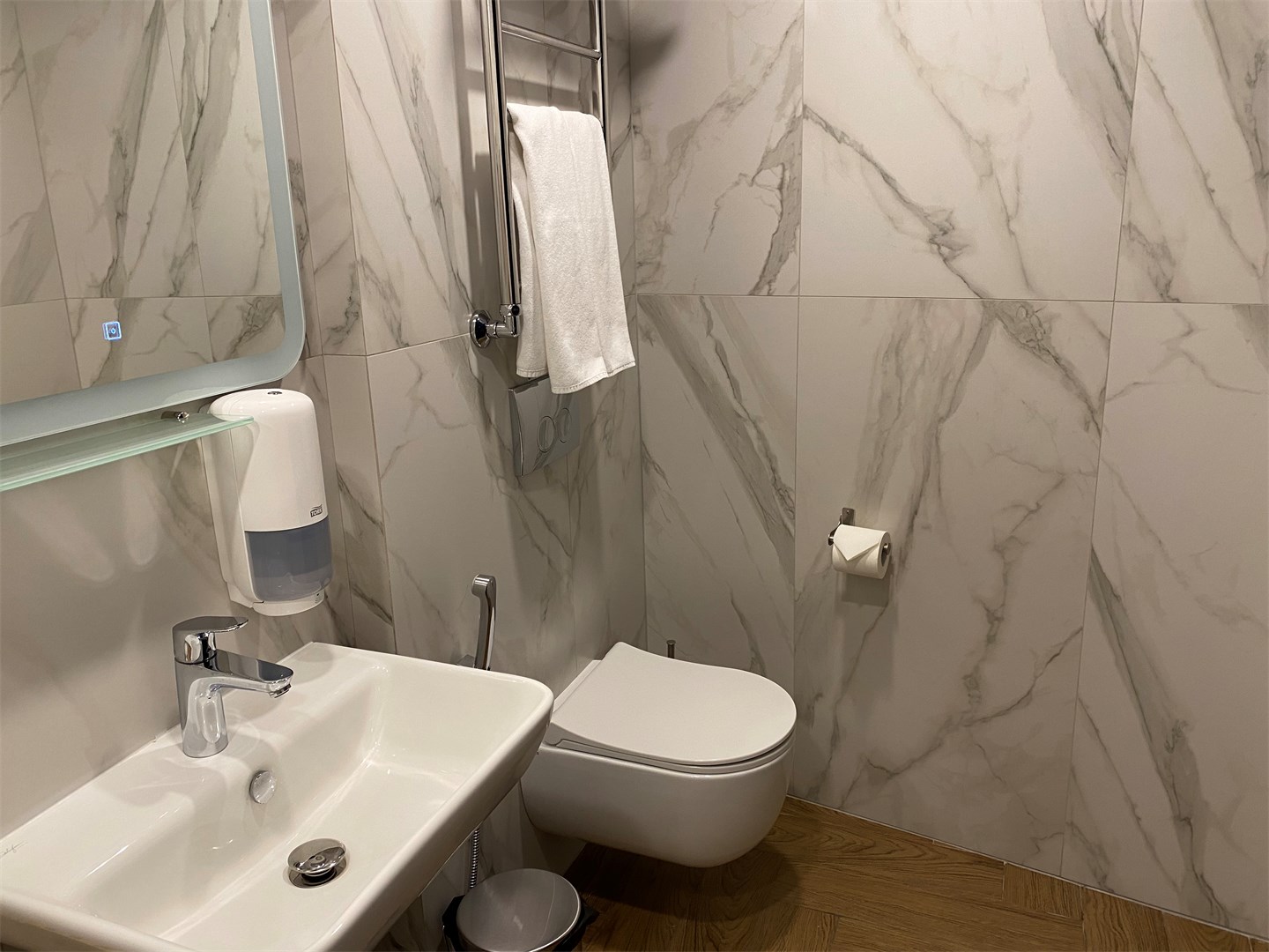 Стильный и современный однокомнатный номер. В номере две кровати 90*200 см или одна кровать 180*200 см, телевизор, мини холодильник, рабочий стол, ванная комната с душевой кабиной/ ванной и косметическими средствами, фен, тапочки, халаты, полотенца.