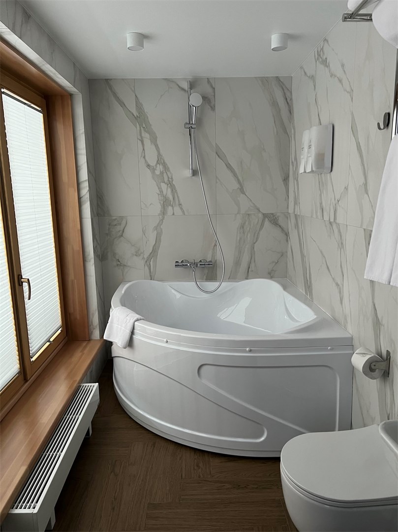 Стильный, современный номер с балконом и видом на водоем. В номере одна кровать 180*200 или две кровати 90*200, телевизор, мини-холодильник, рабочий стол, ванная комната с душевой кабиной/ванной и косметическими средствами, фен, тапочки, халат и полотенца.