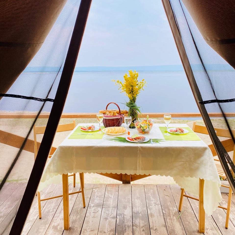 «Берег легенд» — это комфортный отдых на живописном берегу реки, единение с уникальной природой Якутии в кругу семьи и друзей. В нашем парке для проживания доступны 6 роскошных сафари-тентов и 2 уютных дома. В лагере имеются теплый душ и туалет.