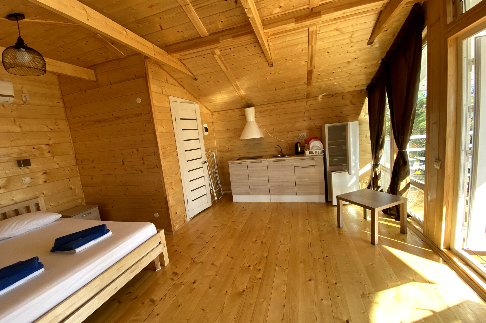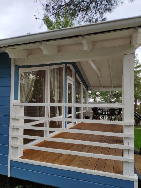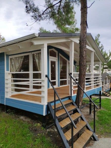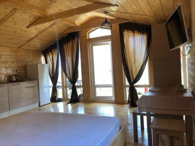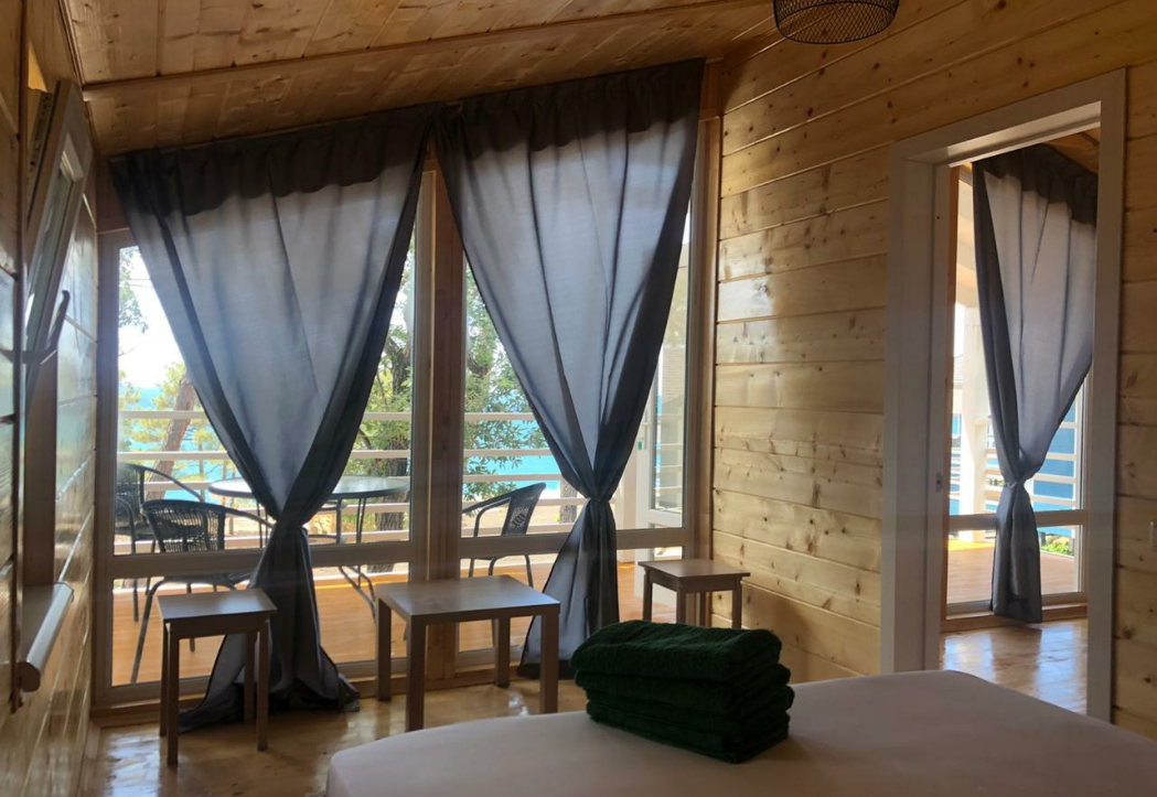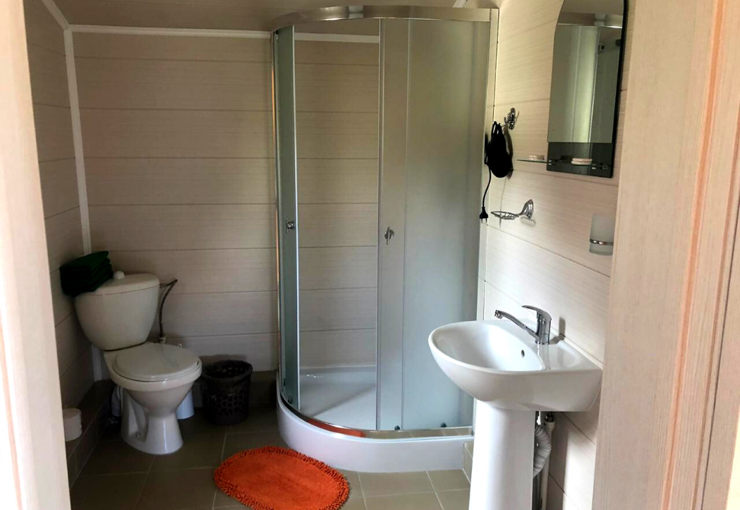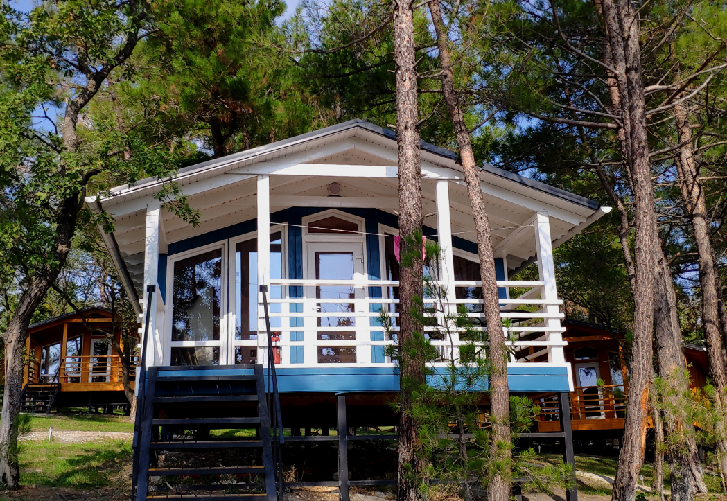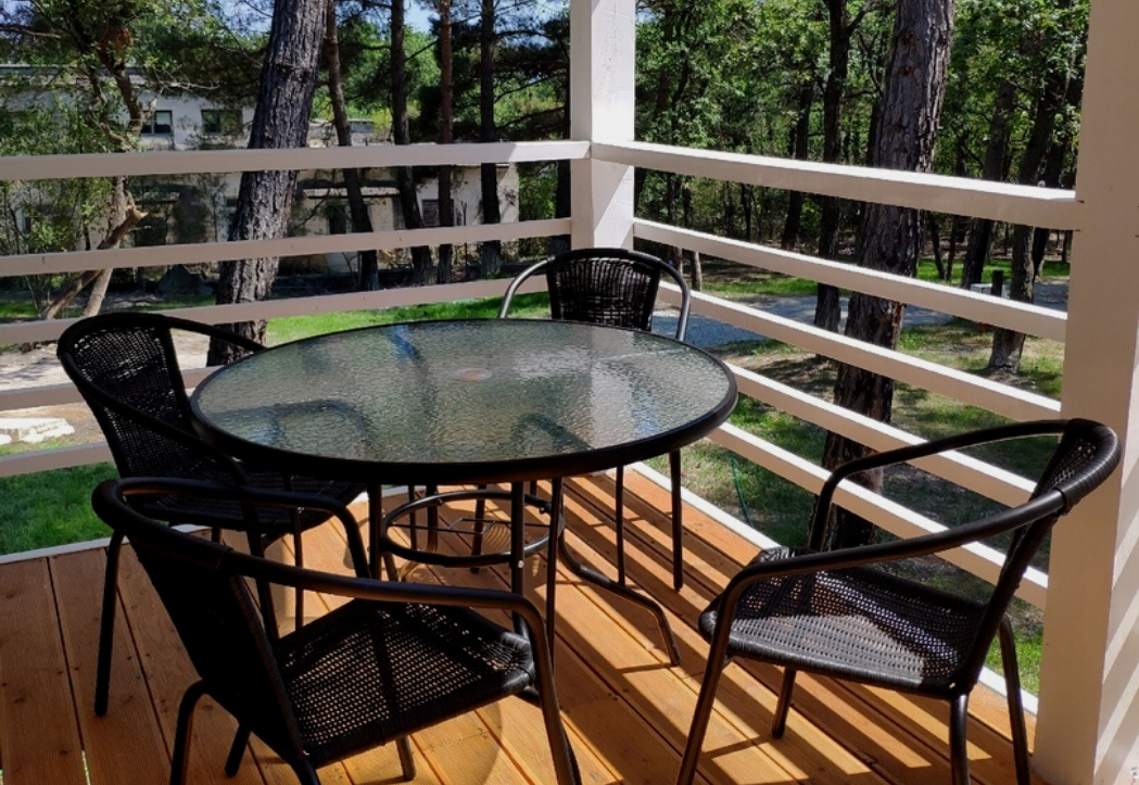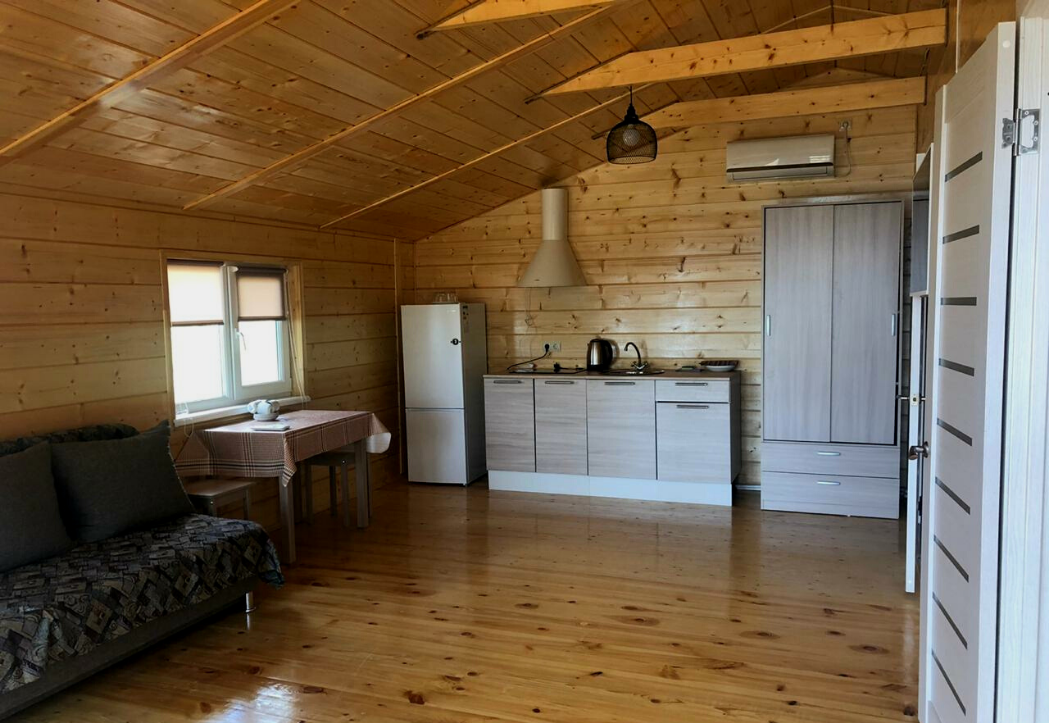- Дома со всеми удобствами (душ с горячей водой, фен, туалет, мини-кухня, посуда) + у каждого коттеджа есть терраса с мебелью