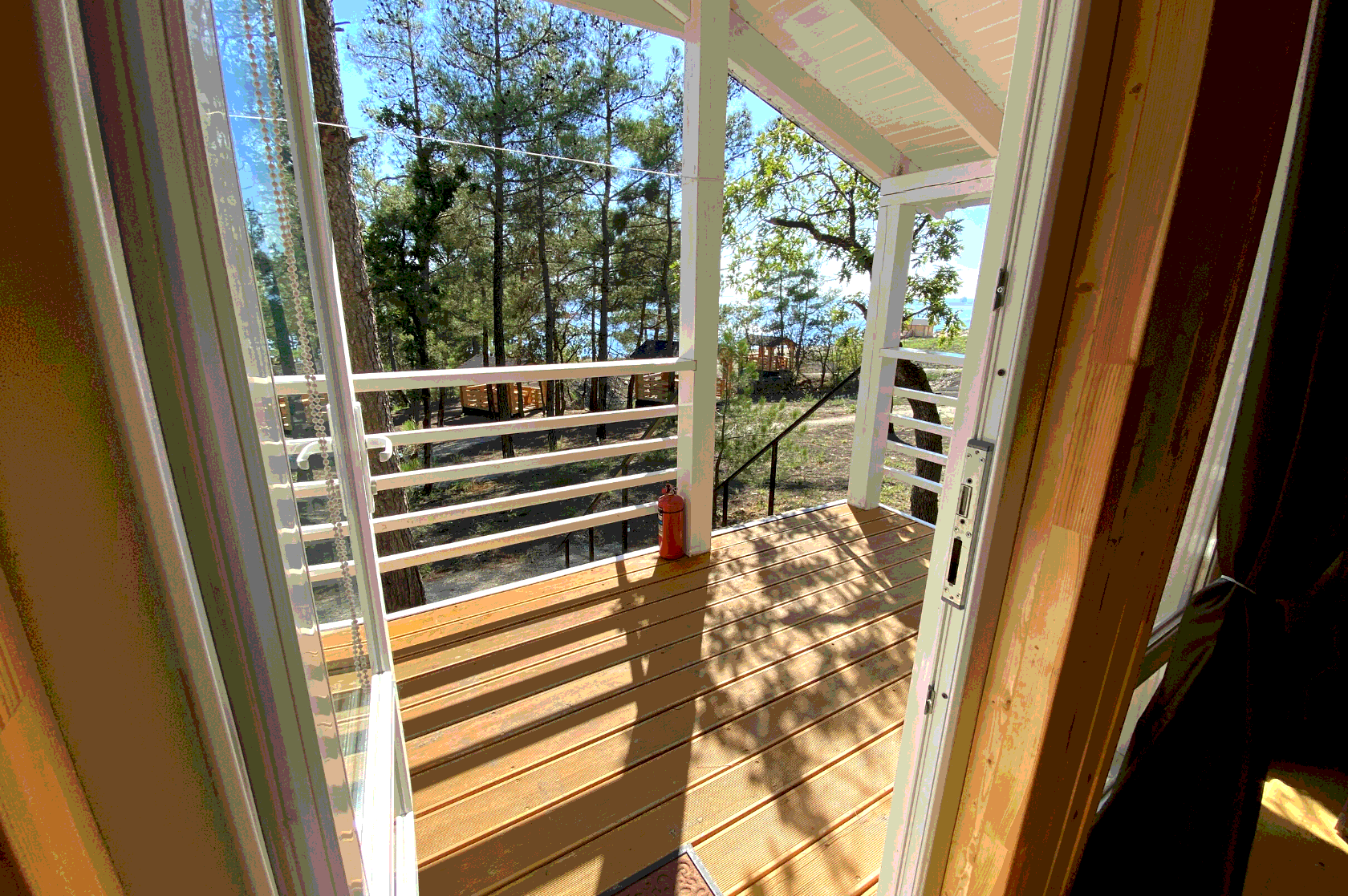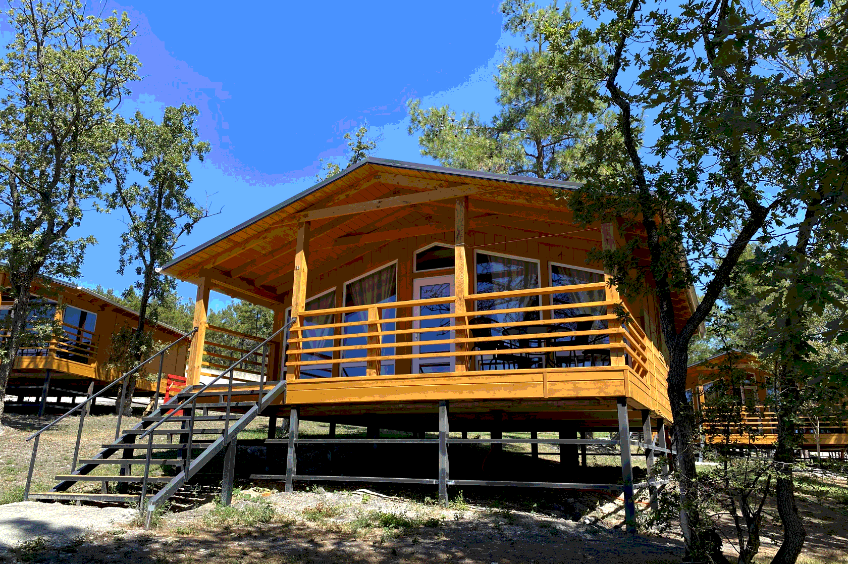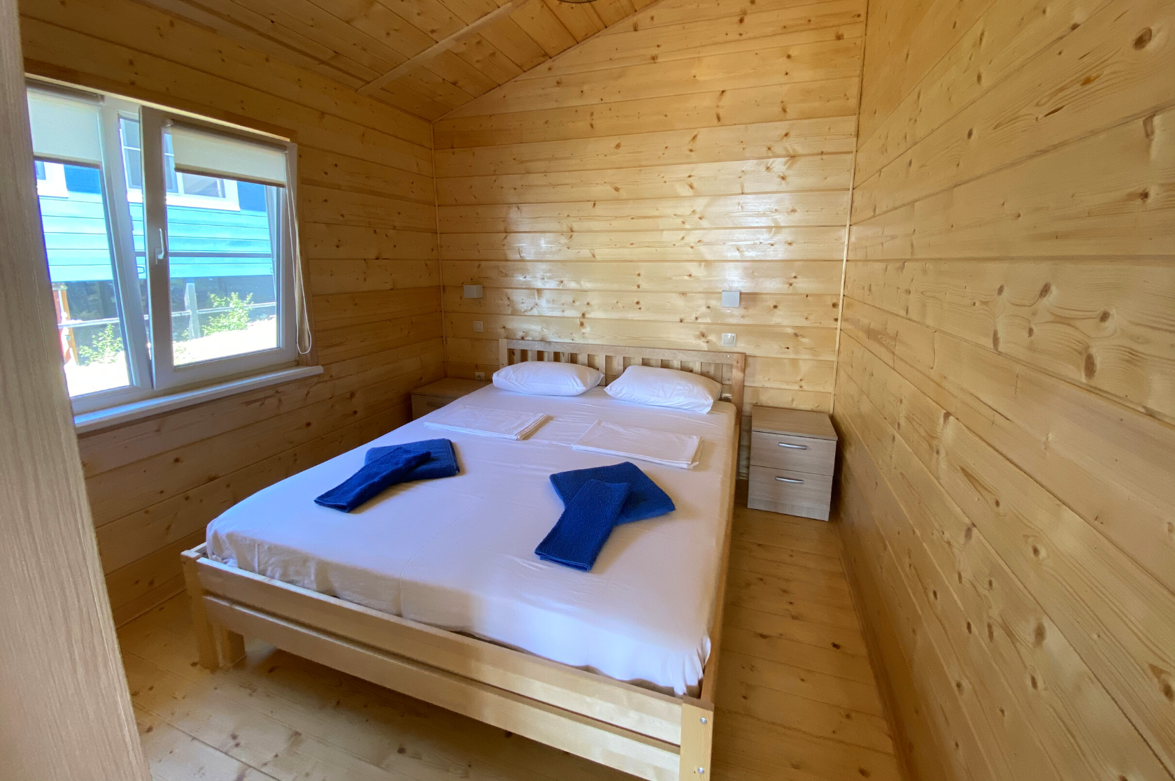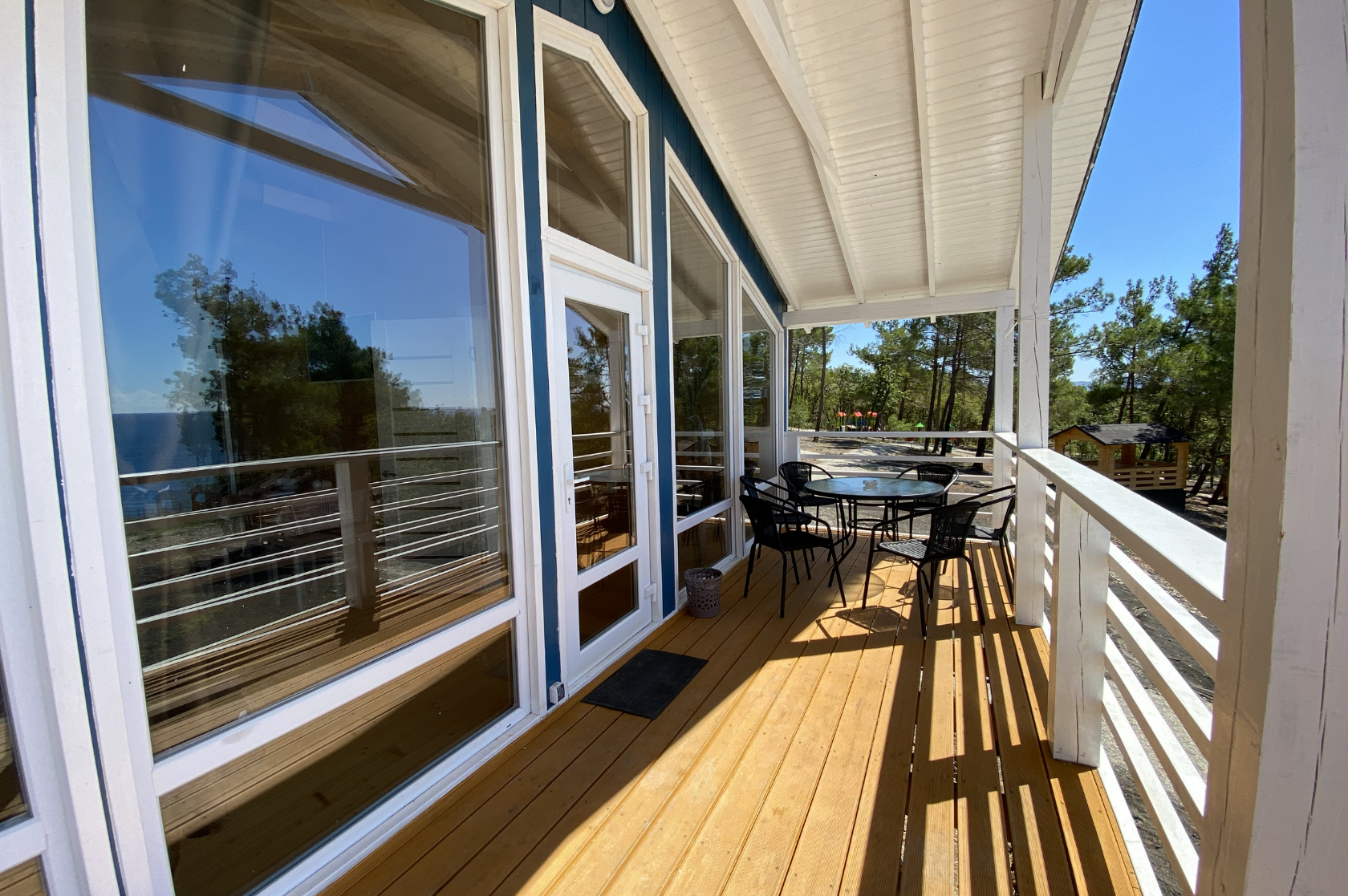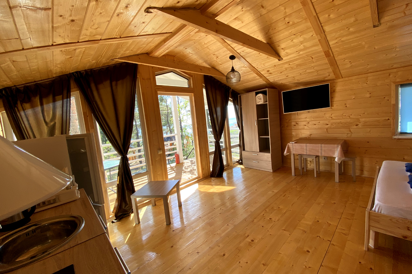 - Дома со всеми удобствами (душ с горячей водой, фен, туалет, мини-кухня, посуда) + у каждого коттеджа есть терраса с мебелью