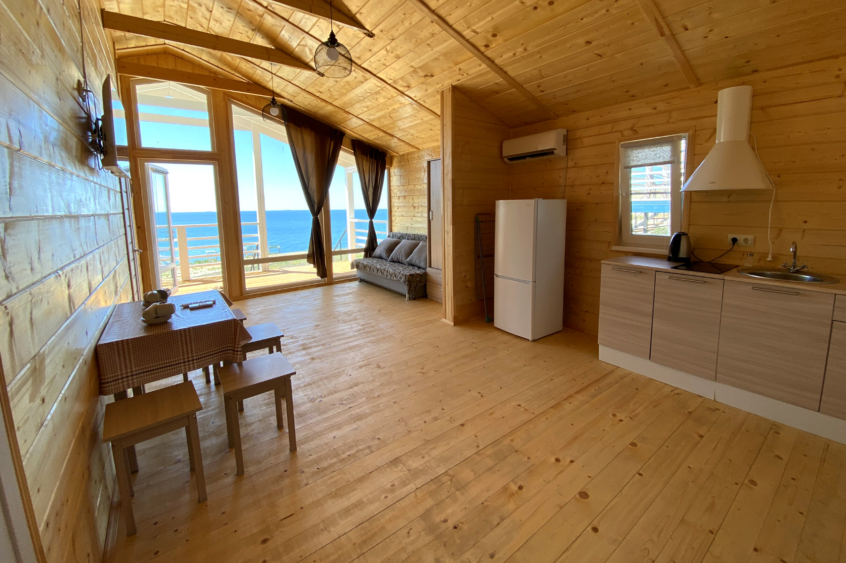Площадь дома внутри 40 м2 + индивидуальная терраса 18 м2 с видом на море.