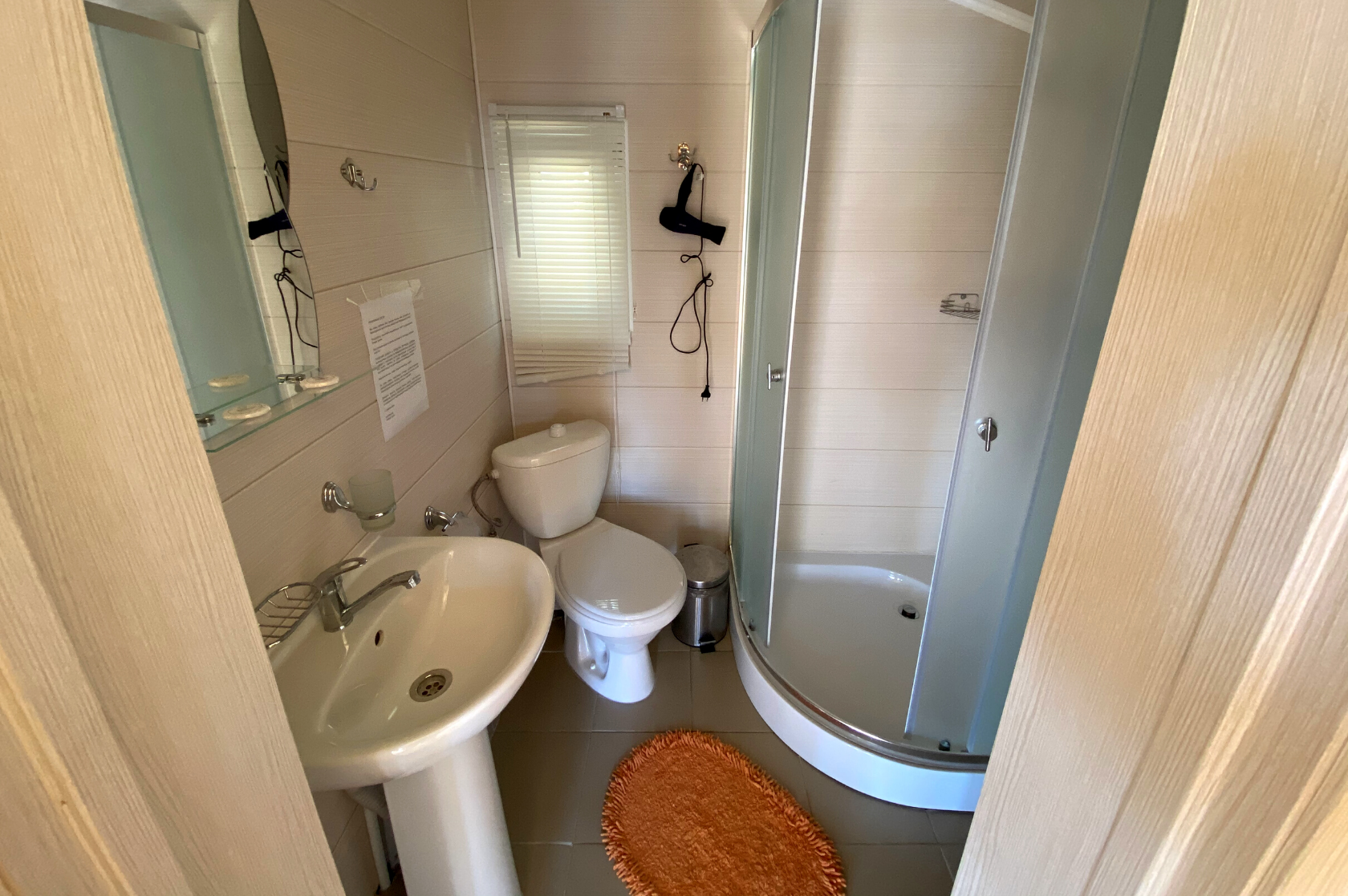 - Душ, туалет и косметические принадлежности в номере