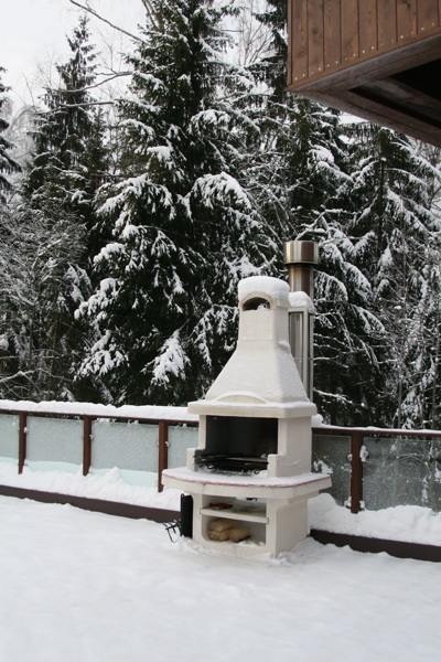 веранда для барбекю с уличным камином;