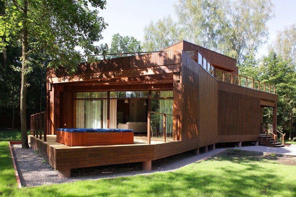 Этот двухуровневый коттедж подойдет для компании из 2-4 гостей. Что ждет вас в доме: