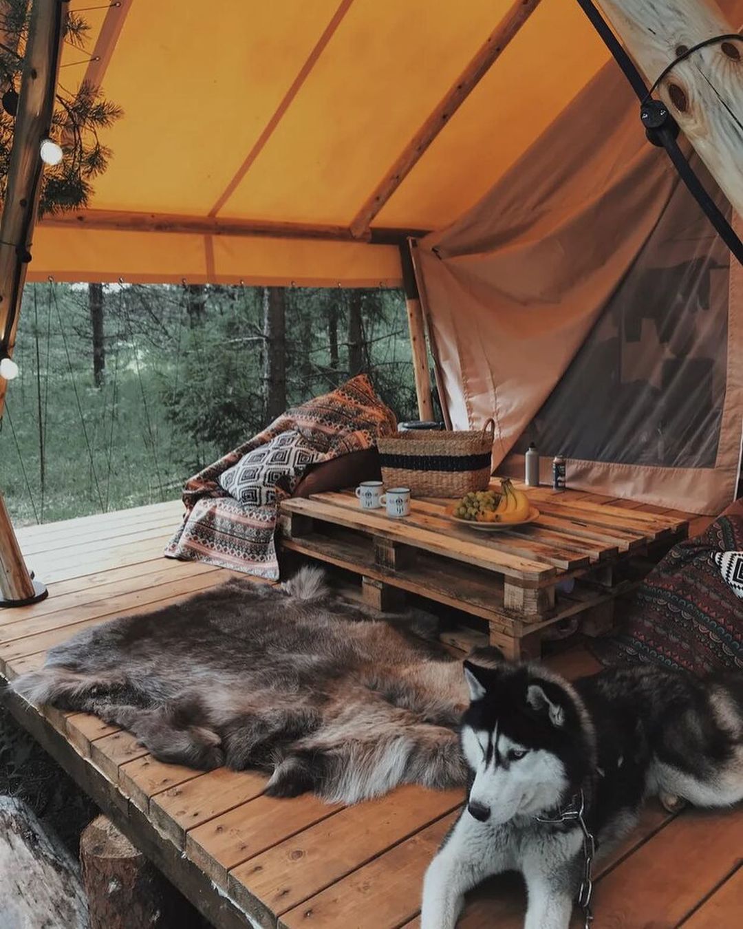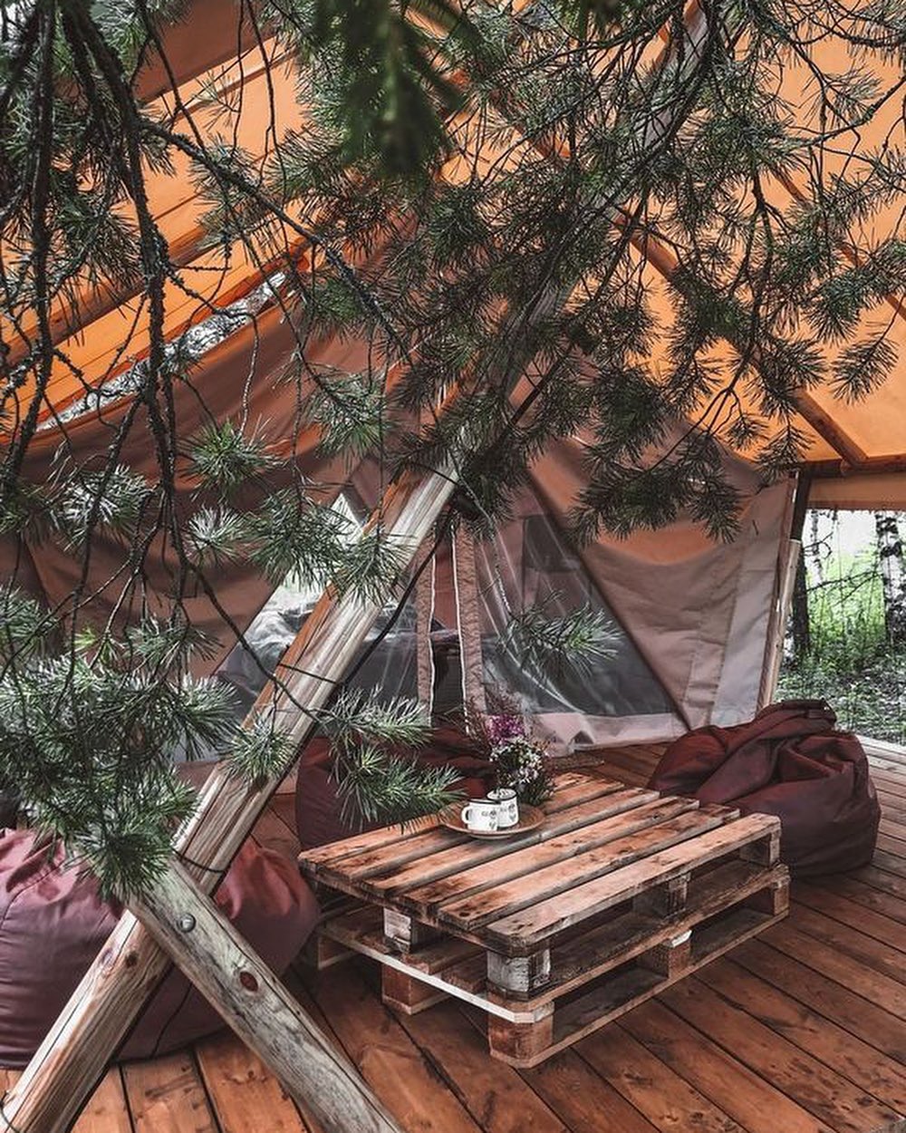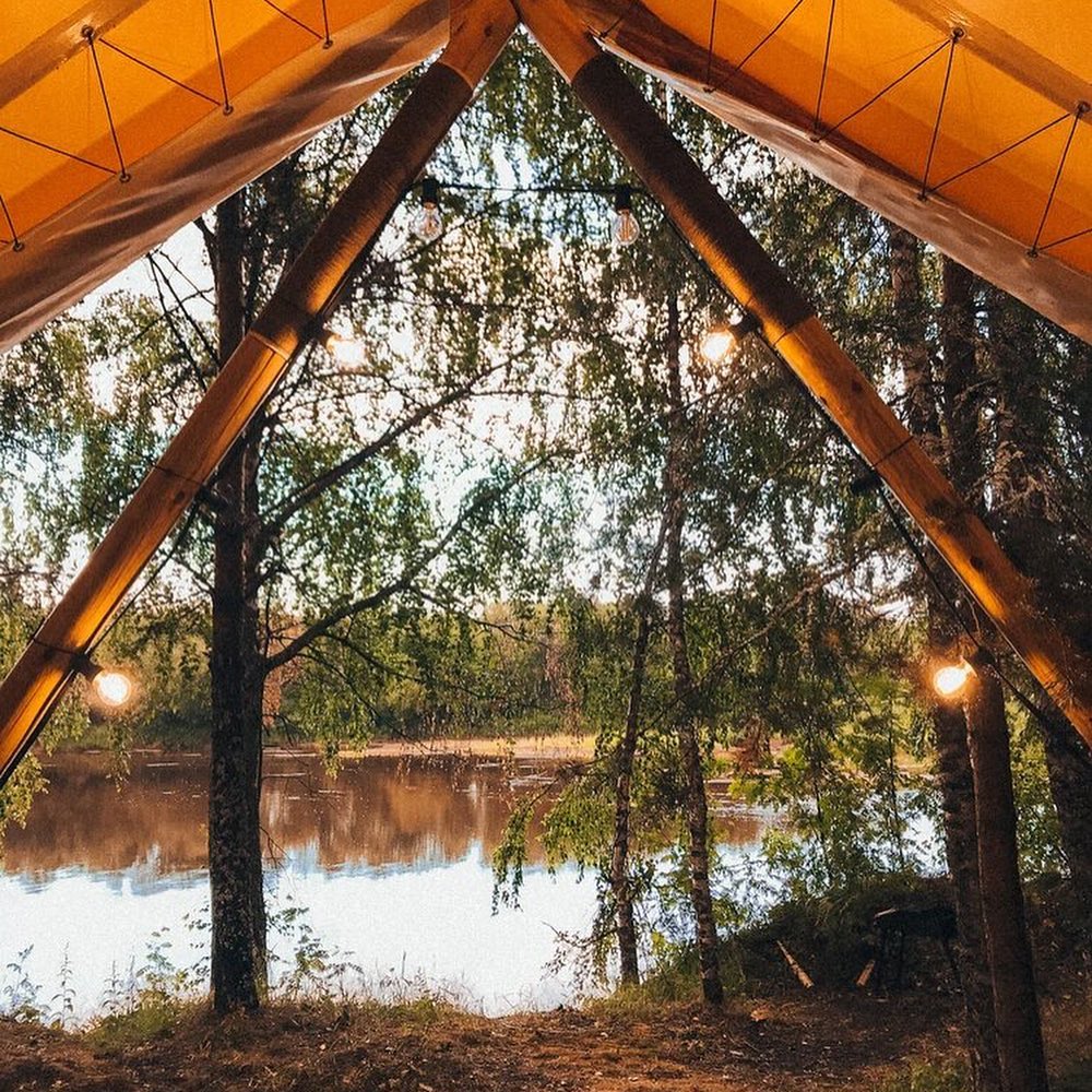 Поселившись в уютных индейских типи или деревянных домиках А-конструкции с панорамными окнами, вы почувствуете все прелести отдыха в полном единении с природой без походного дискомфорта.