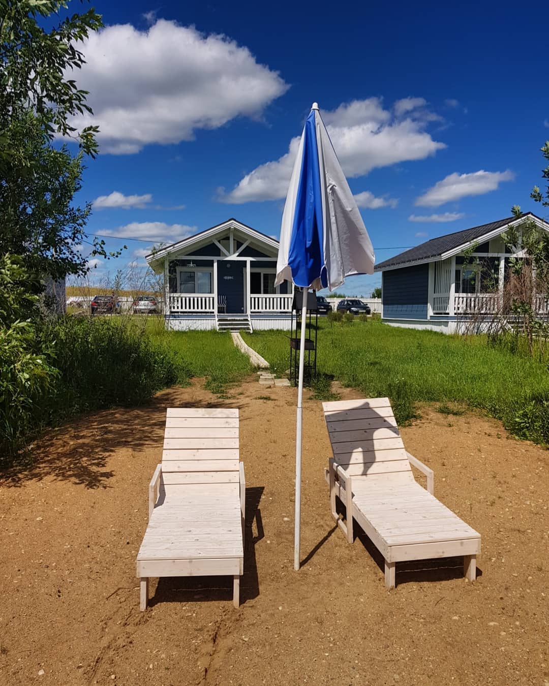 — у каждого домика собственный песчаный пляж, шезлонги, зонтики (в летний период);