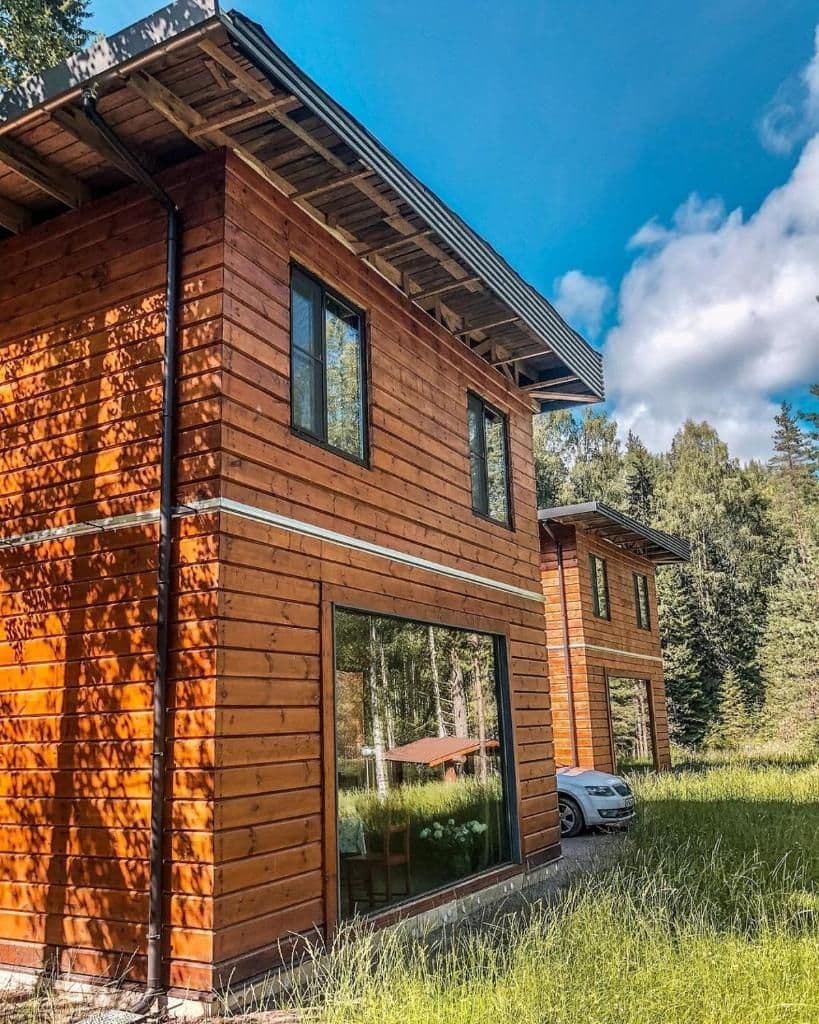 Для большой компании сдается коттедж Brusnika Village. 5 спальных комнат со всеми постельными принадлежностями, полностью оборудованная кухня, два санузла. В гостиной пол с подогревом, выложен плиткой. Панорамное окно в гостиной с видом на озеро. Одна спальня на первом этаже, четыре спальни на втором. В двух спальнях есть возможность разместить дополнительные места (с доплатой за каждое) Покрытие пола - ковролин. Постельное белье и полотенца предоставляются для всех гостей, включая дополнительные места. Максимальное размещение в доме - 14 человек.