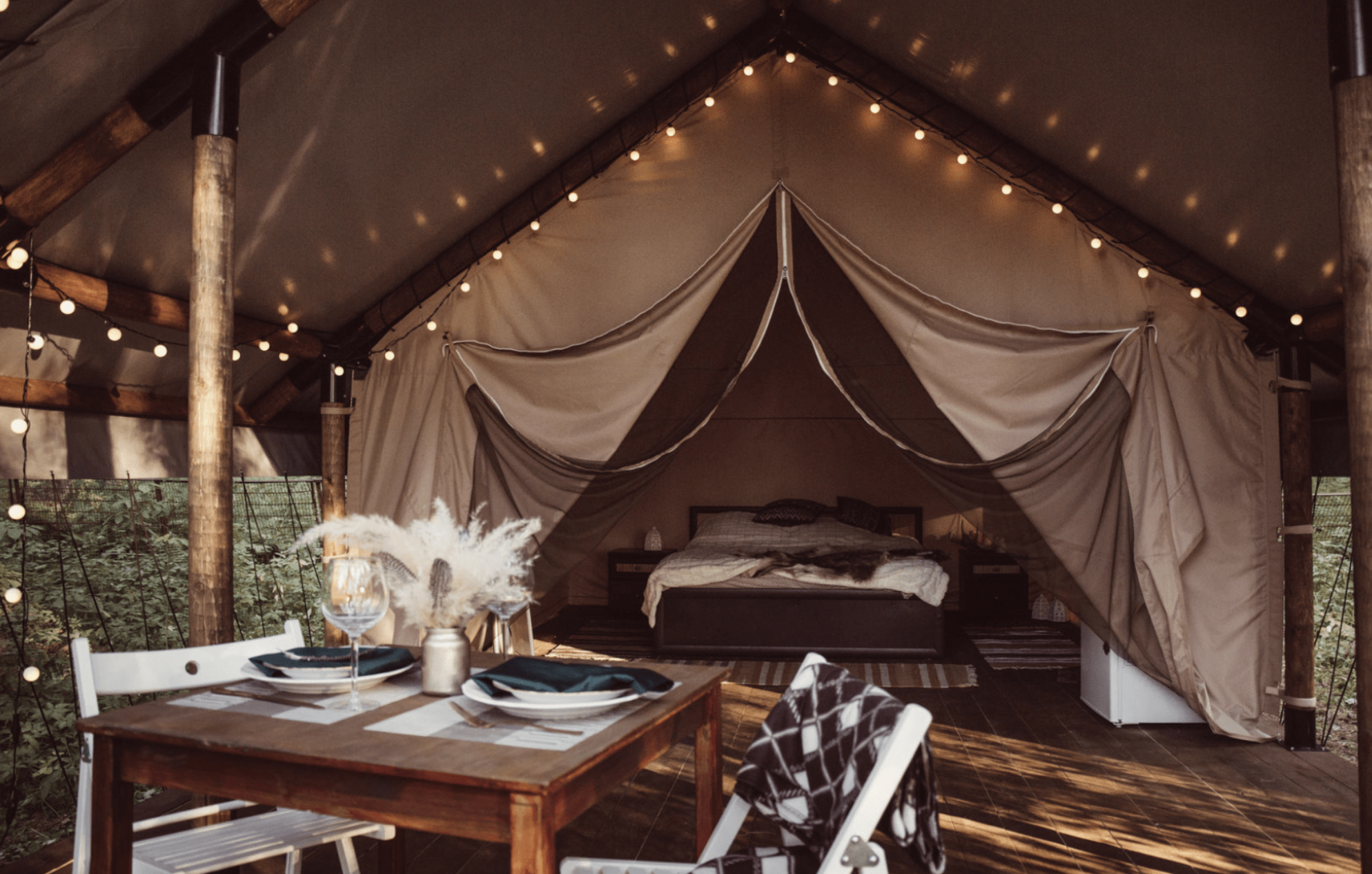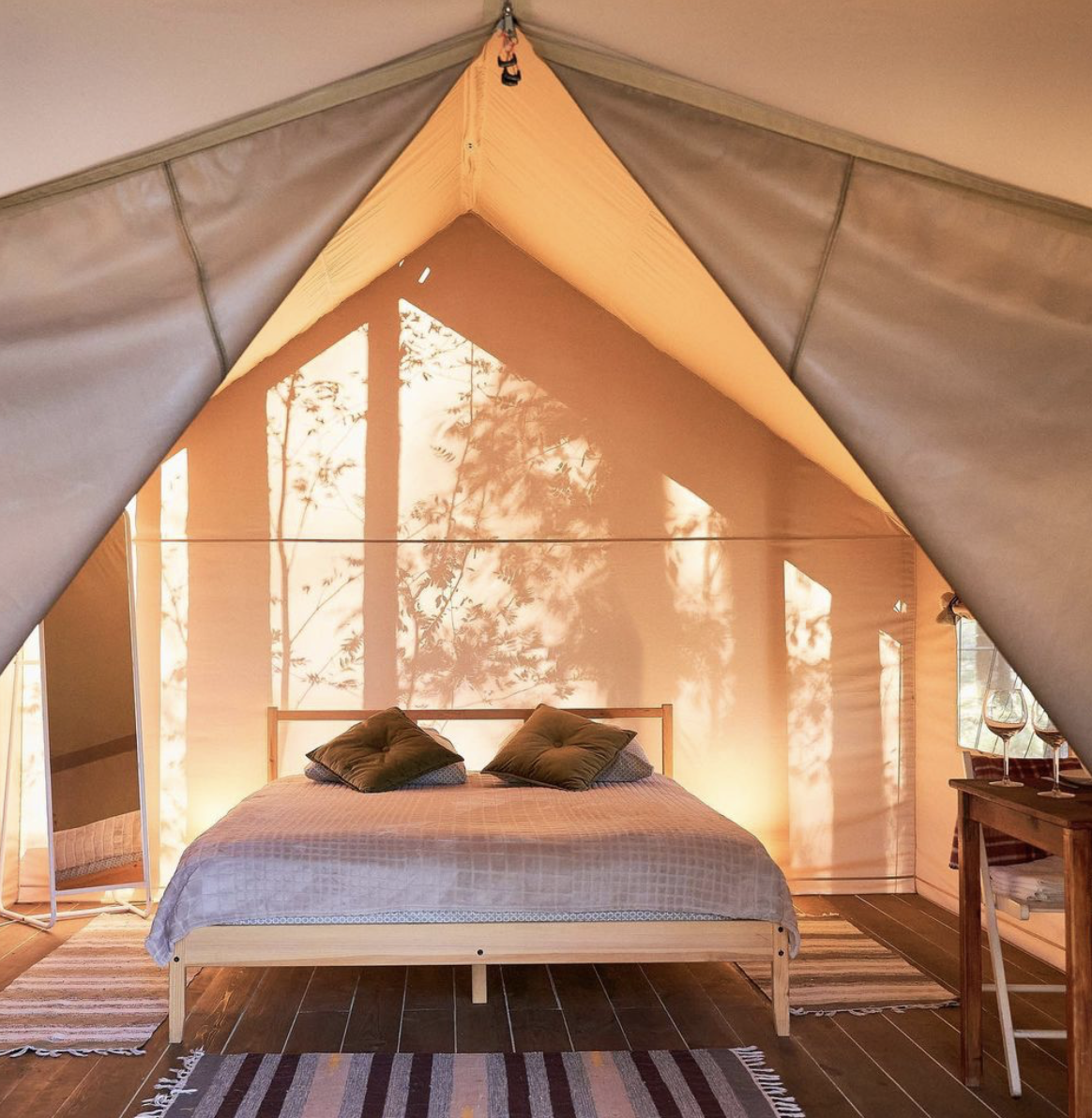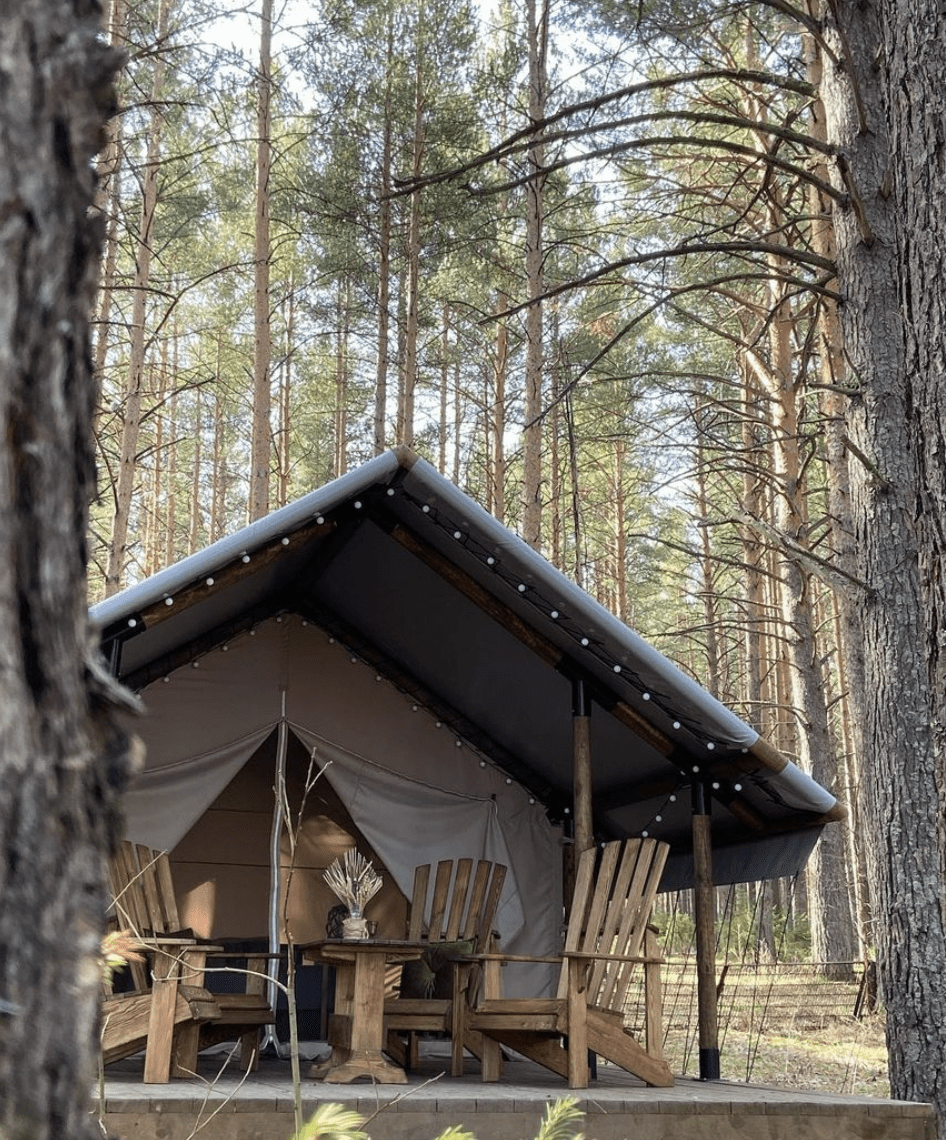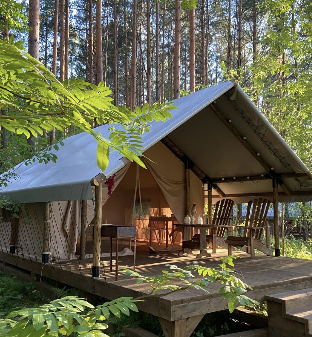 Глэмпинг палатка – воплощение дикости и уюта. Под пологом ветвей вы сможете погрузиться в глубины себя