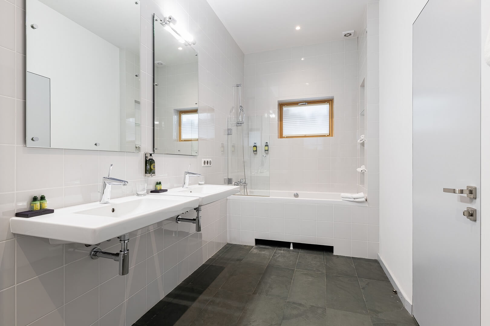 В каждом квадродоме есть свой душ и туалет, подогреваемые полы, чайная станция, фен, полотенца, халаты и тапочки, французская косметика L'Occitane и гигиенические наборы.