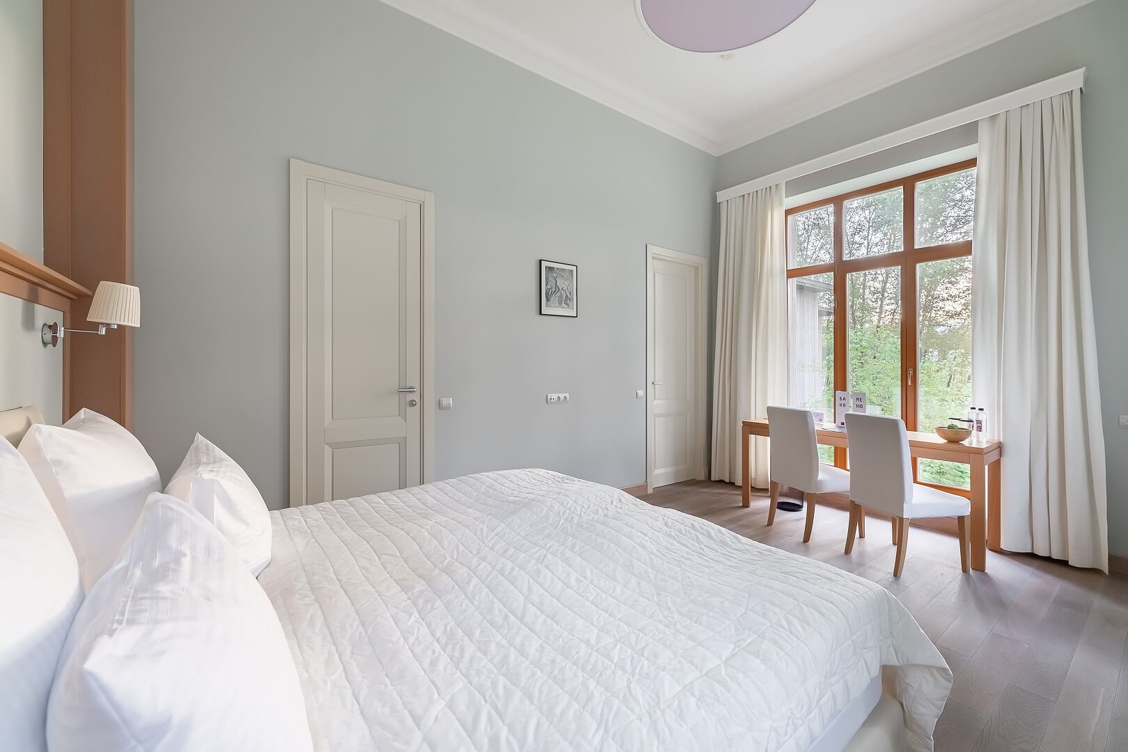 Главная спальня с кроватью 200х200 см. и собственной ванной комнатой; две спальни с кроватями 160х200 см. и общей ванной комнатой для двух спален