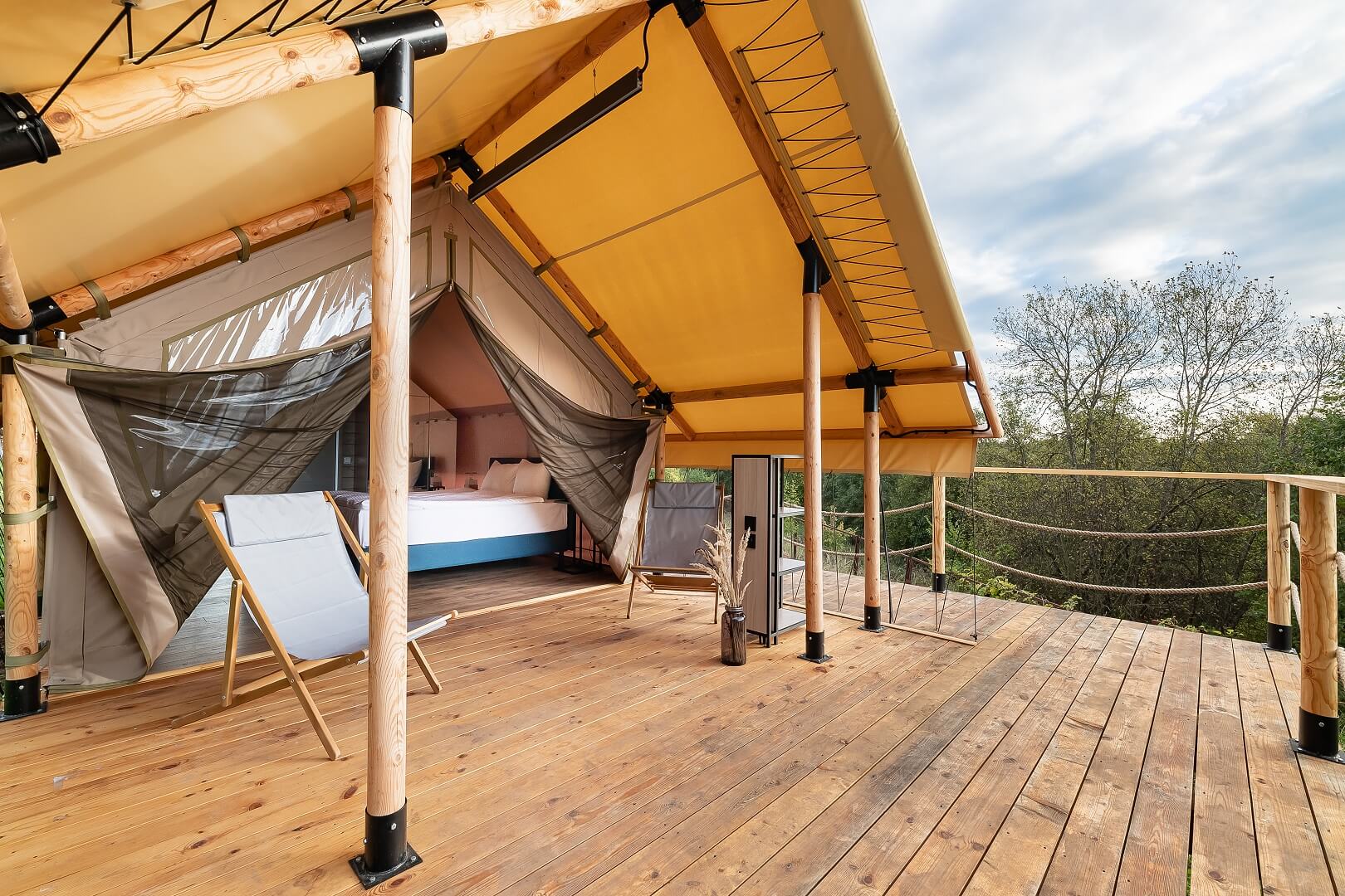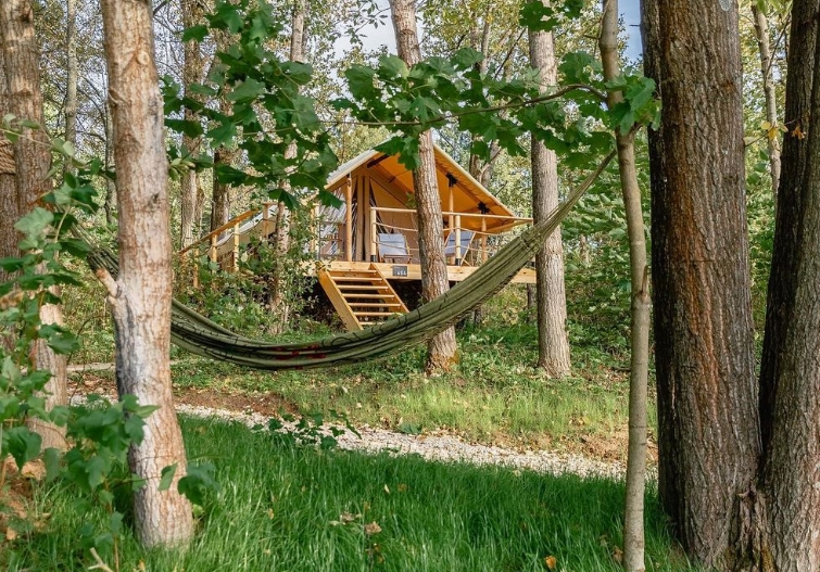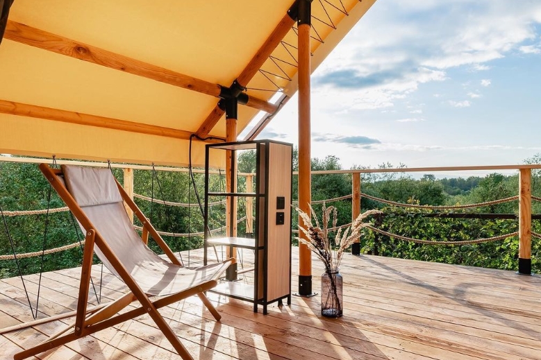 Идеальные выходные вдали от мегаполиса - это живописная природа, уединение и никакой суеты. Глэмпинг-шатер "Ветер в кронах" дарит своим гостям возможность насладиться тишиной и свежим воздухом, не отказываясь от привычного уровня комфорта. Спите сладко под звуки дождя, радуйтесь утреннему пению птиц или совершенствуйте контроль над телом во время практик йоги на видовой веранде.