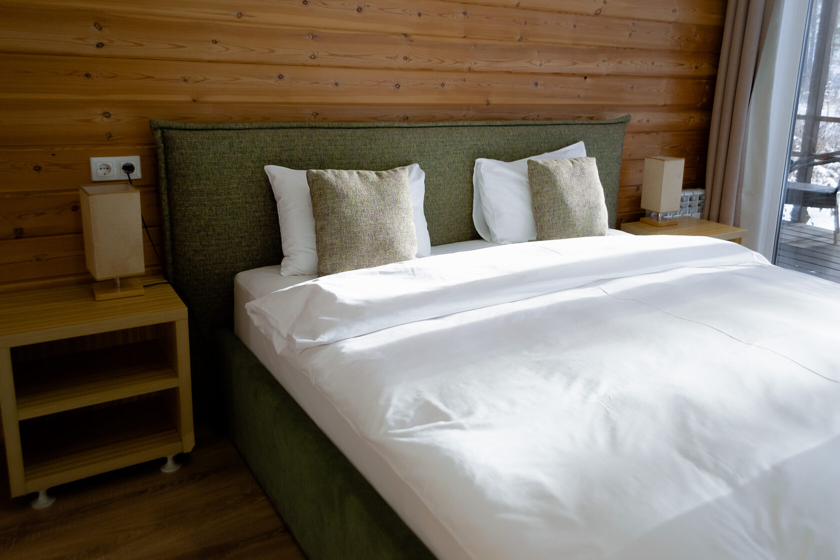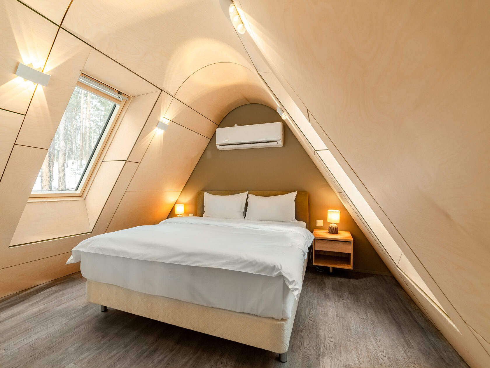 Отдельно стоящие двухкомнатные апартаменты включают в себя: спальню, гостиную, кухню, санузел, террасу 2 основных места и 3 дополнительных (за отдельную плату)