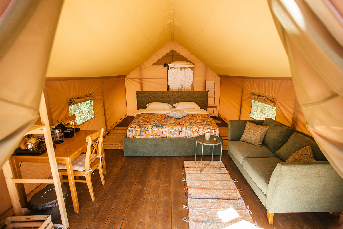 Кемпинг повышенной комфортности в скандинавском стиле минимализма.