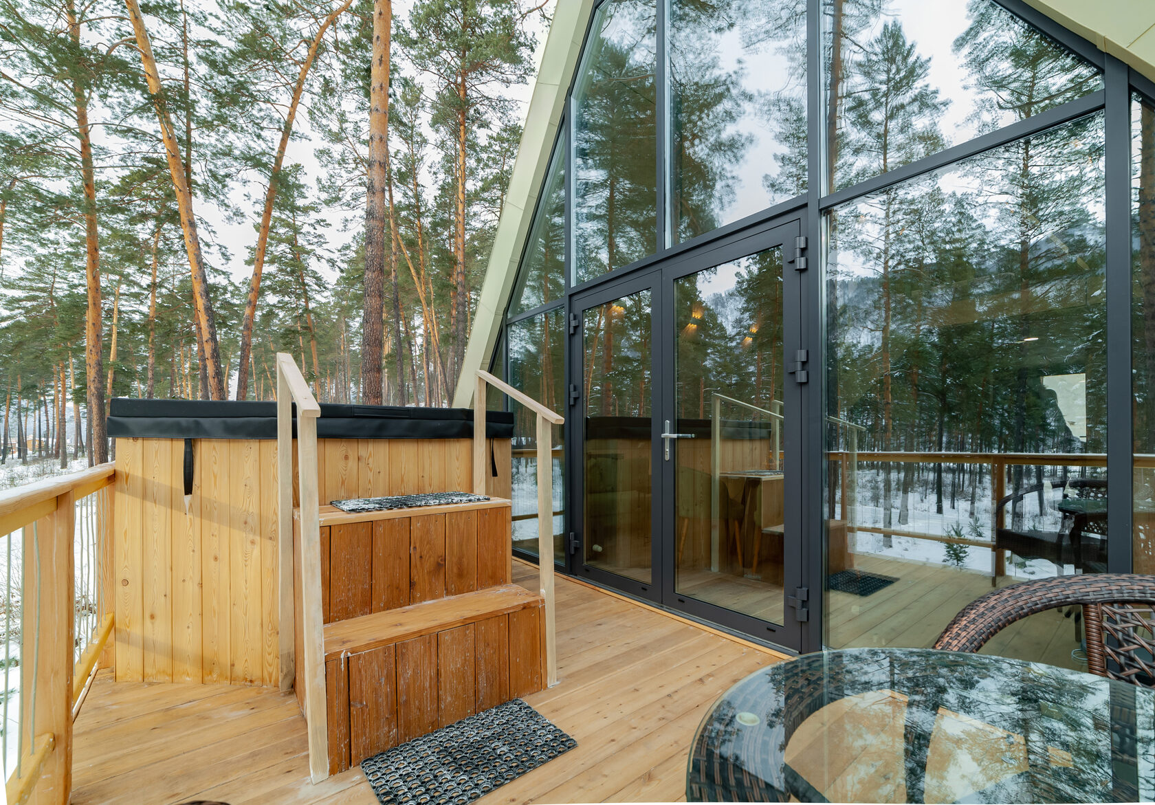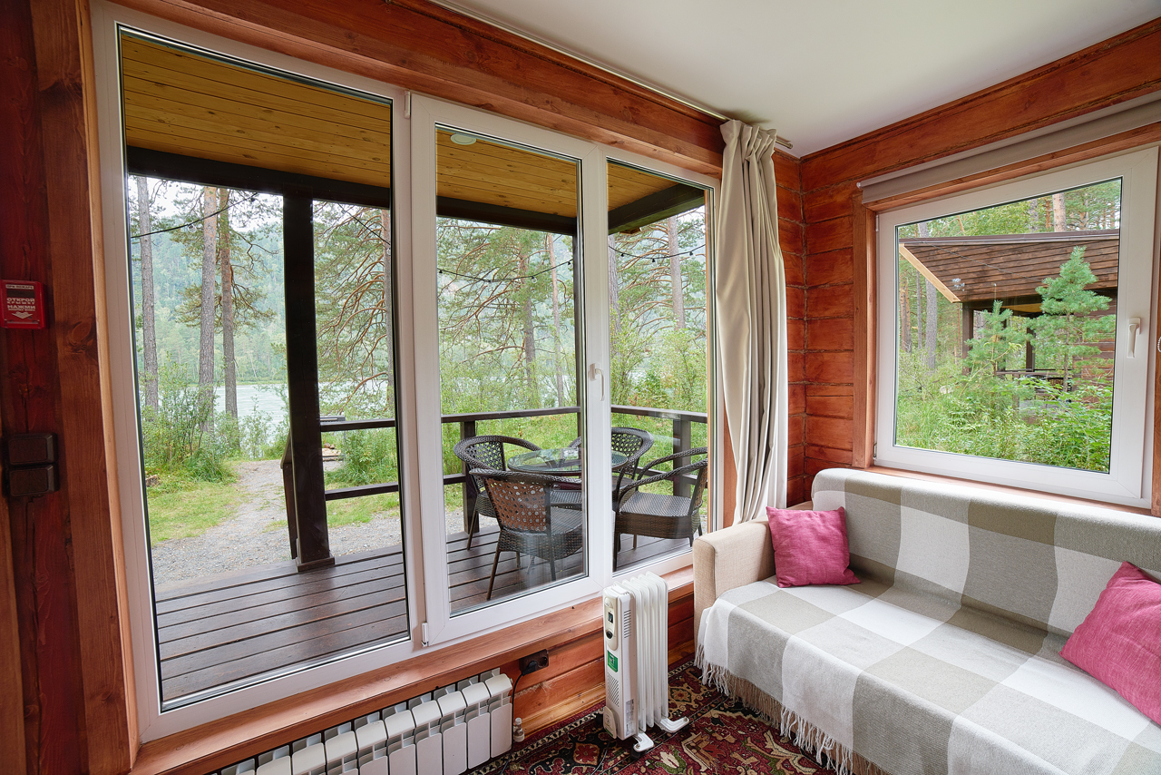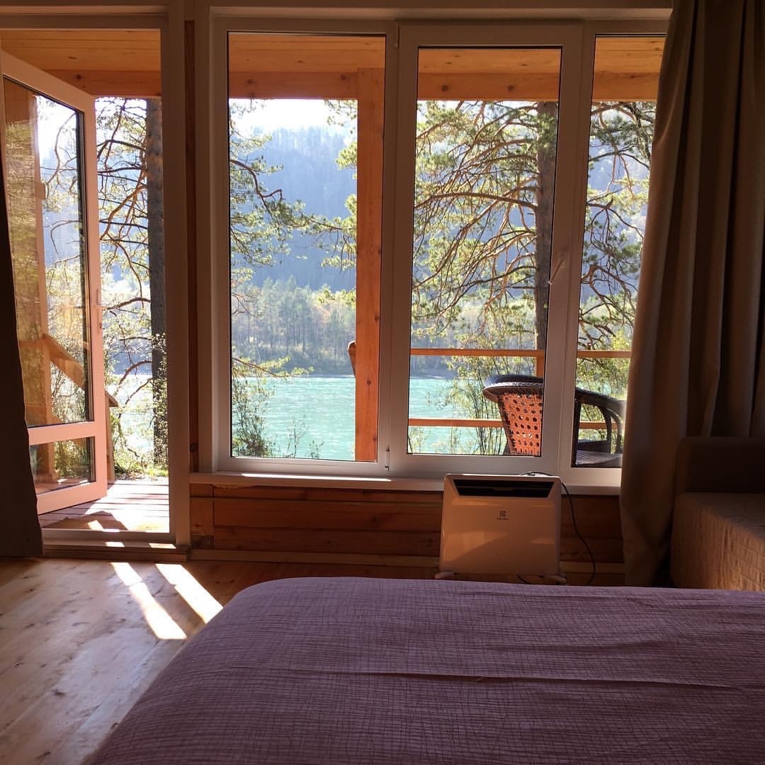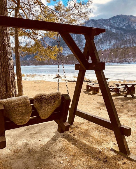 - На территории глэмпинга работает ресторан. Уютный зал и застекленная терраса, летняя веранда на свежем воздухе с видом на Катунь - здесь все наполнено особой атмосферой