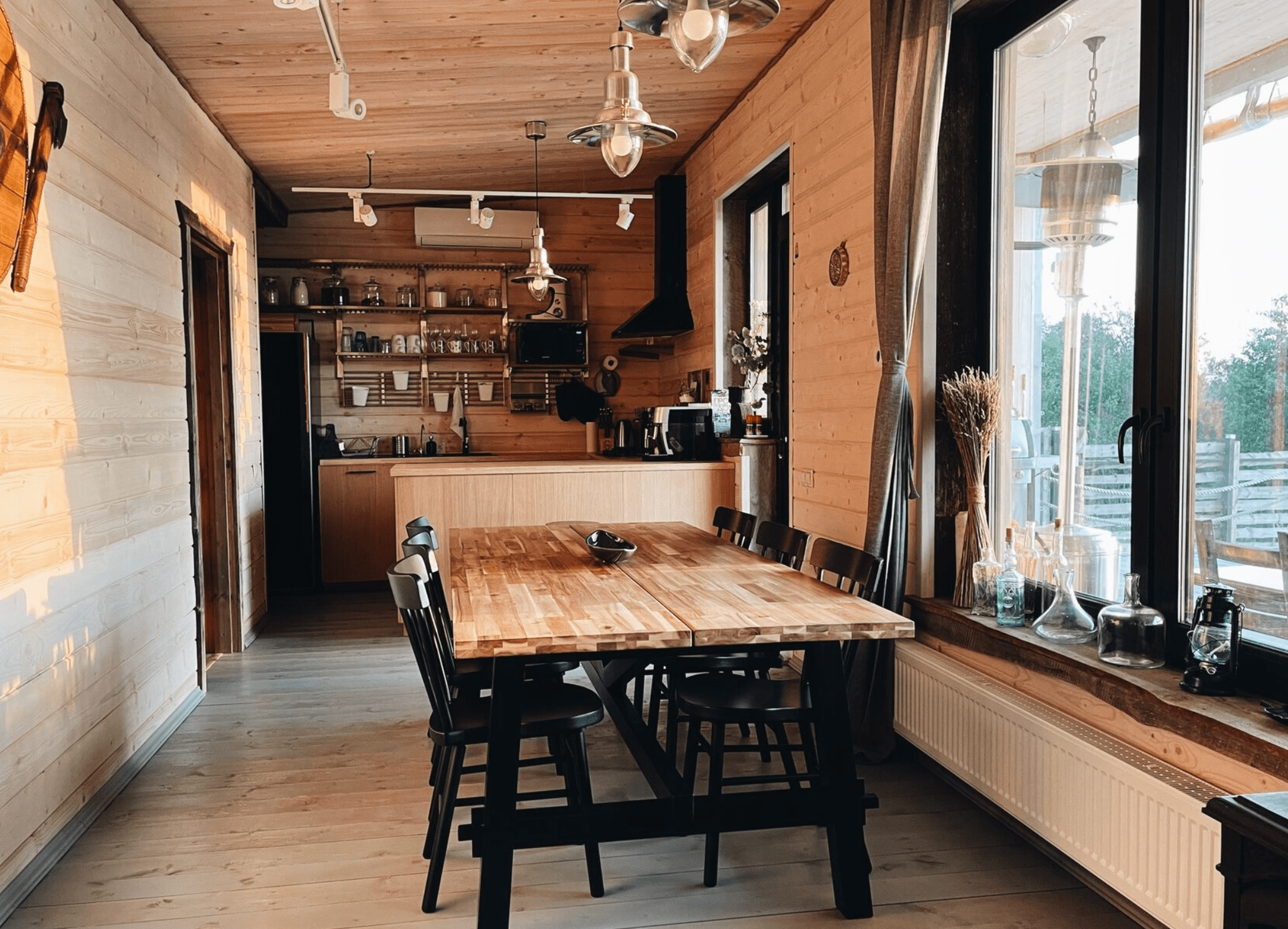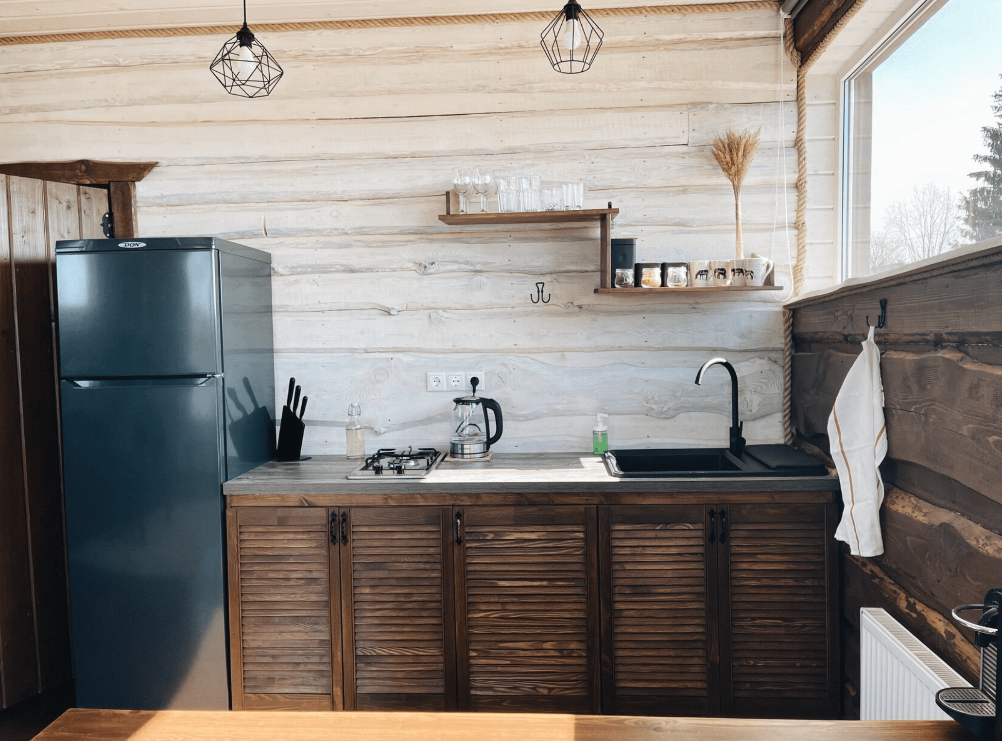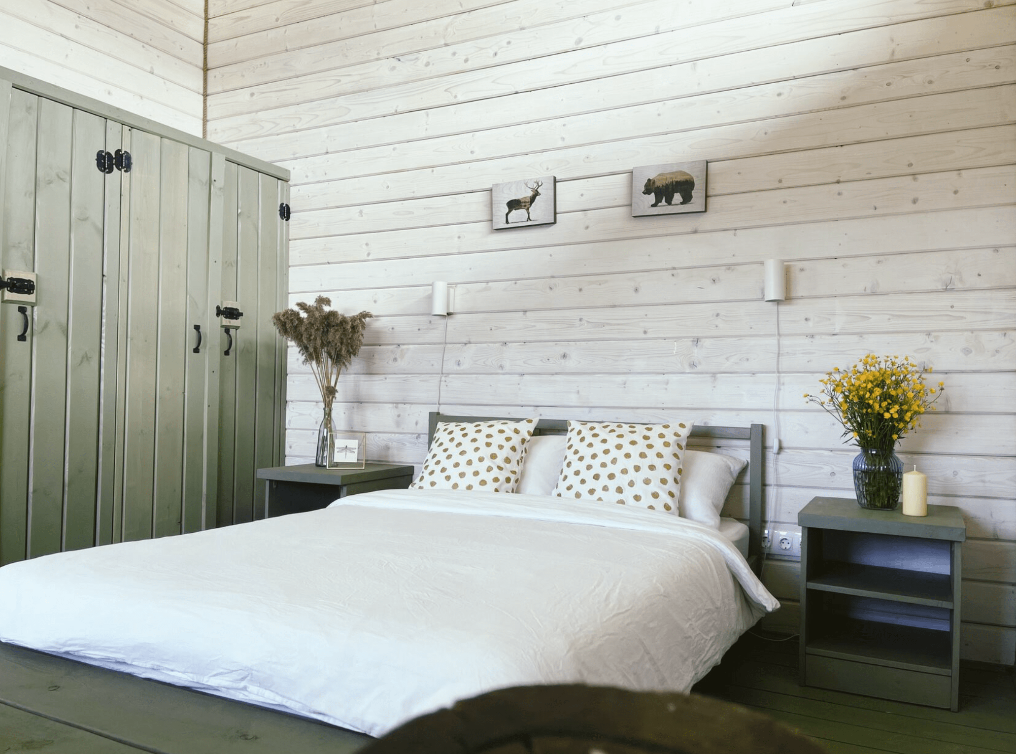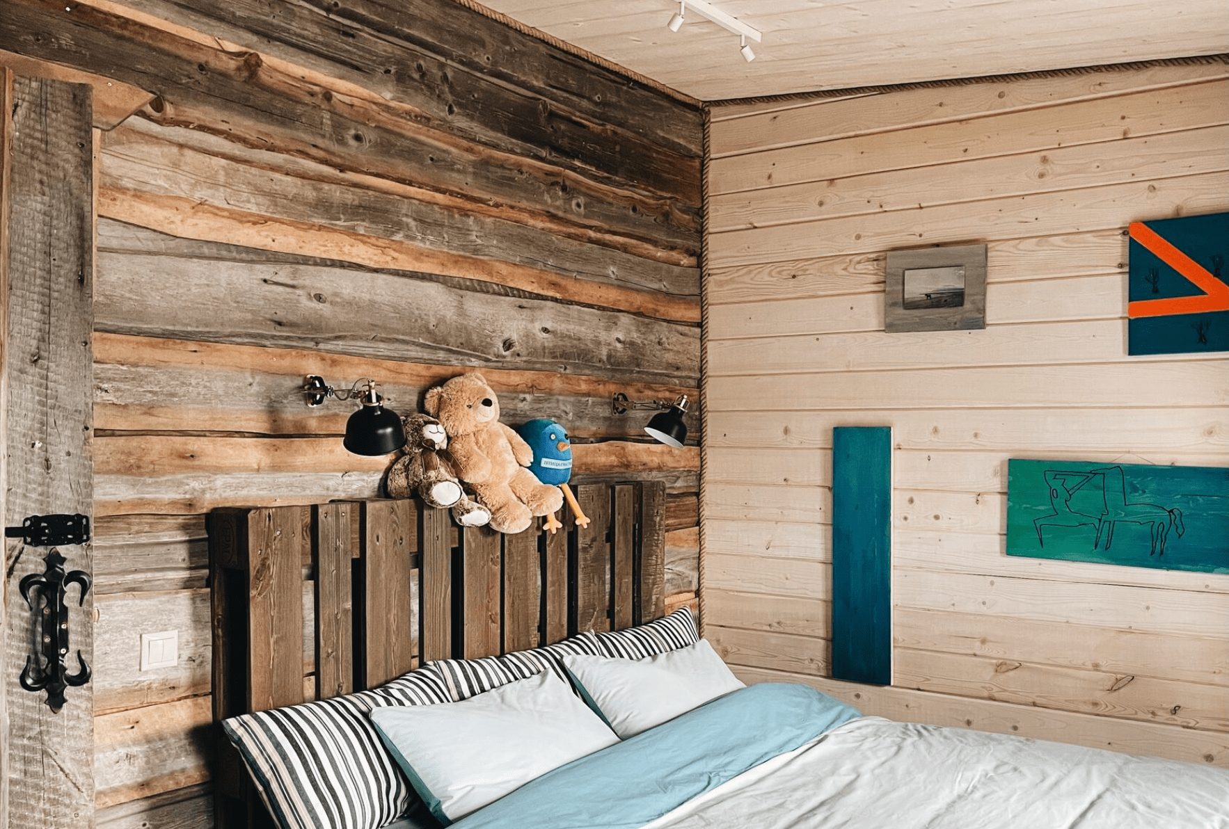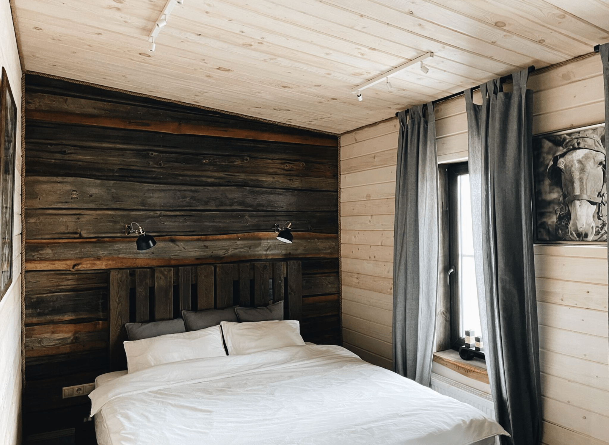 Уютный домик площадью 60м2 выполнен в формате студии. Панорамные окна с видом на озеро позволяют любоваться великолепными восходами и закатами, не вставая с кровати.